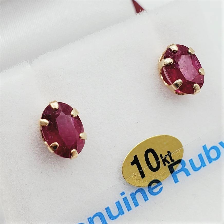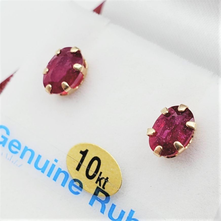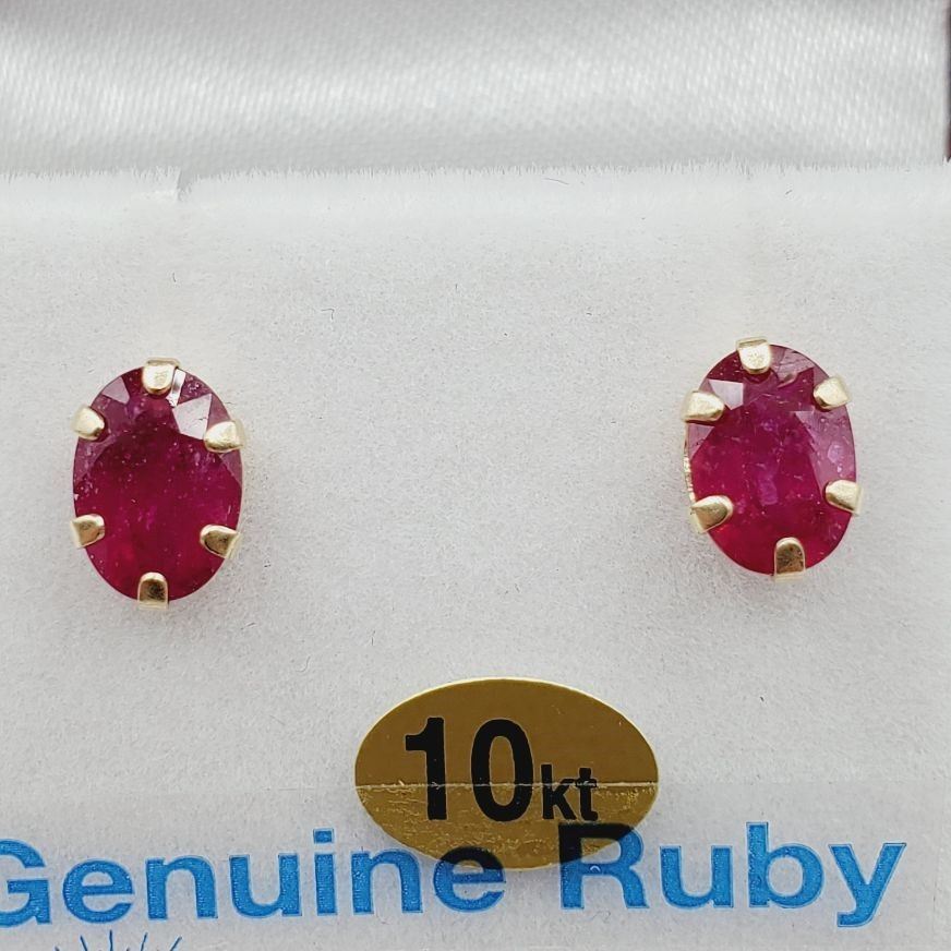 10kt. Yellow Gold 7mm x 5mm Natural Enhanced Ruby Earrings, 2.2cts, W/A $765.00, Ruby is the birthstone for July.