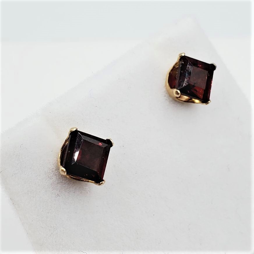 14kt. Yellow Gold 4.9mm x 4.9mm Natural Garnet stud Earrings, 1.44cts, W/A $425.00, Garnet is the birthstone for January.