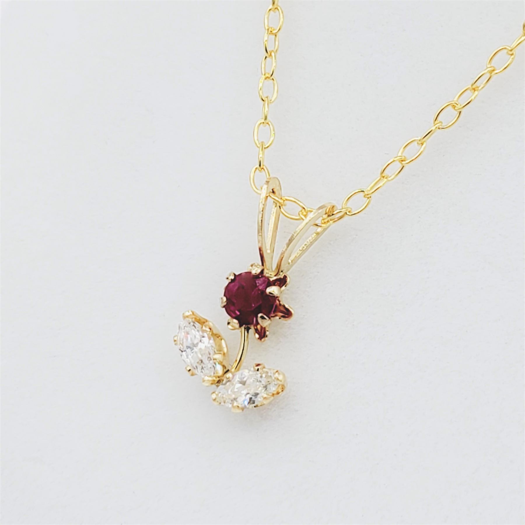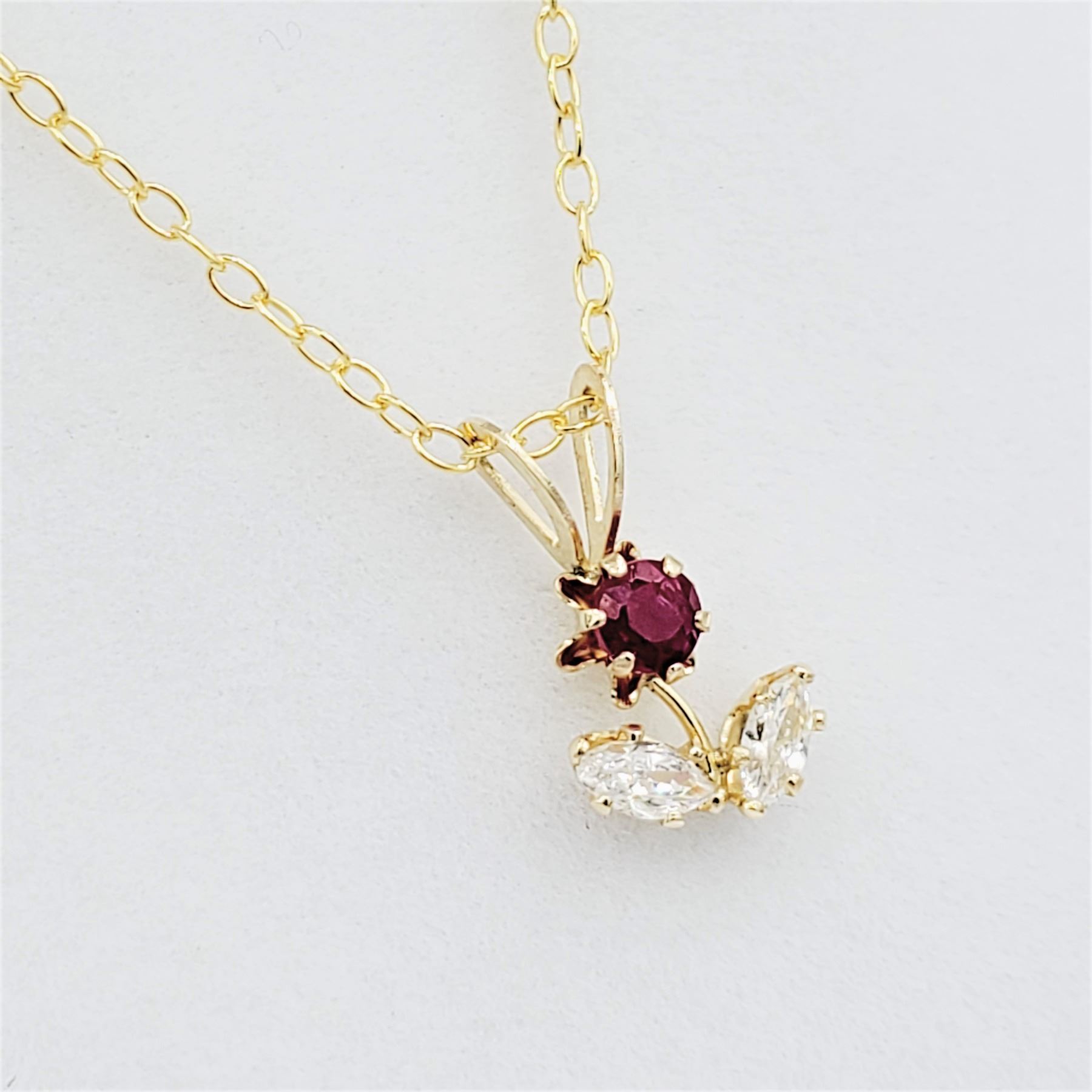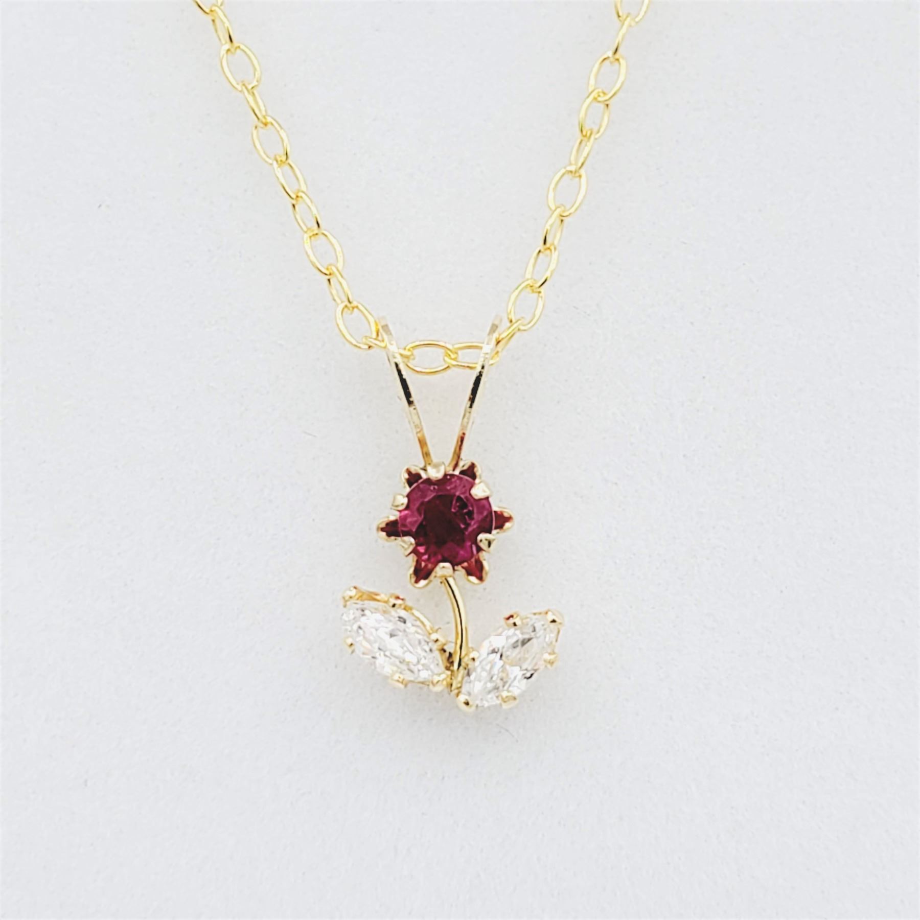 14kt. Yellow Gold 3.1mm x 3.1mm Natural Ruby (0.16cts) & Cubic Zirconia Floral Pendant with Sterling chain, With appraisal of $690.00, Ruby is the birthstone for July.
