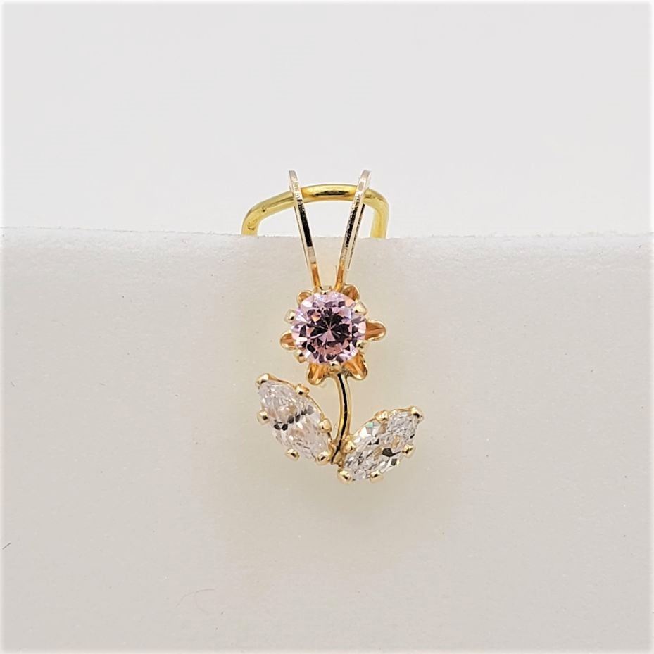 10kt. Yellow Gold Pink & White CZ Flower Pendant with Sterling chain, W/A $680.00