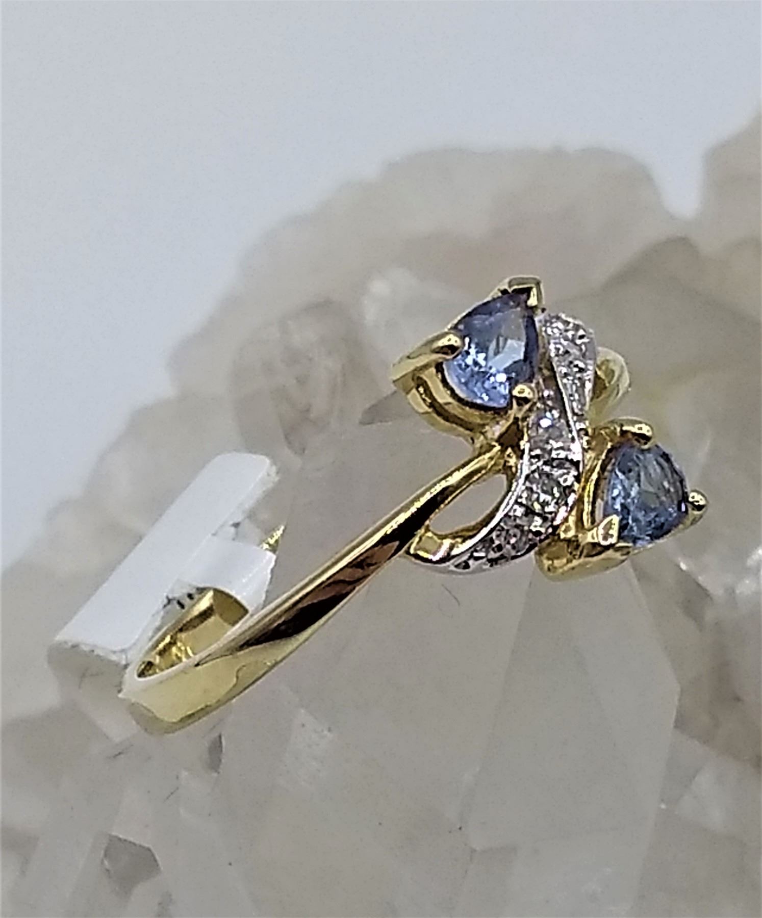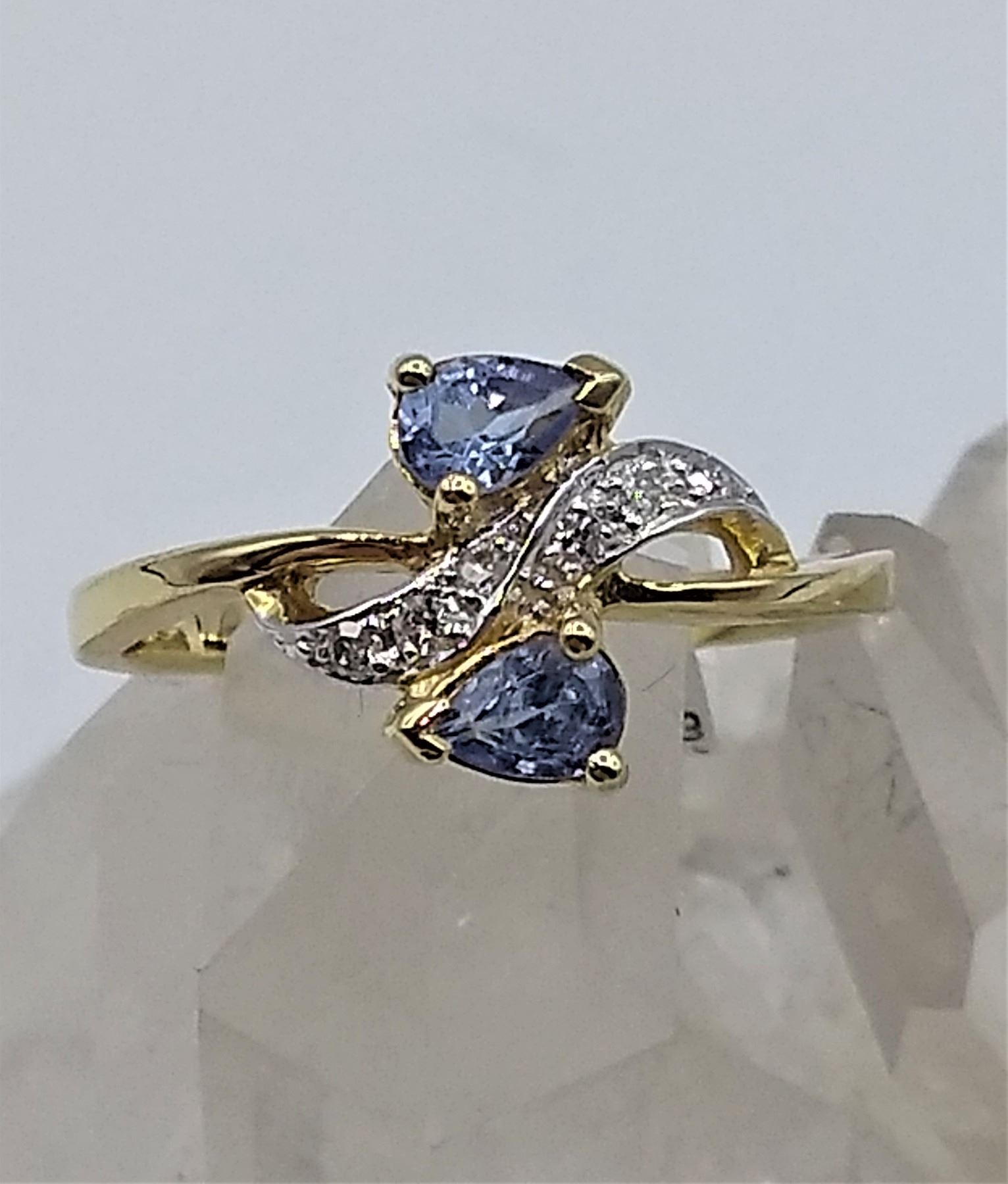 10kt. Yellow Gold 4x3mm genuine Tanzanite (0.26cts) & Diamond (0.02cts) Ring, Size 6.5, With appraisal of $1645.00