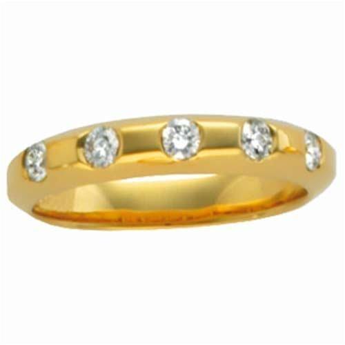 This is a sizable 4 to 8 yellow gold wedding band with .30pt of white diamonds. There are 6 5pt diamonds on this band. This is a 4mm band.