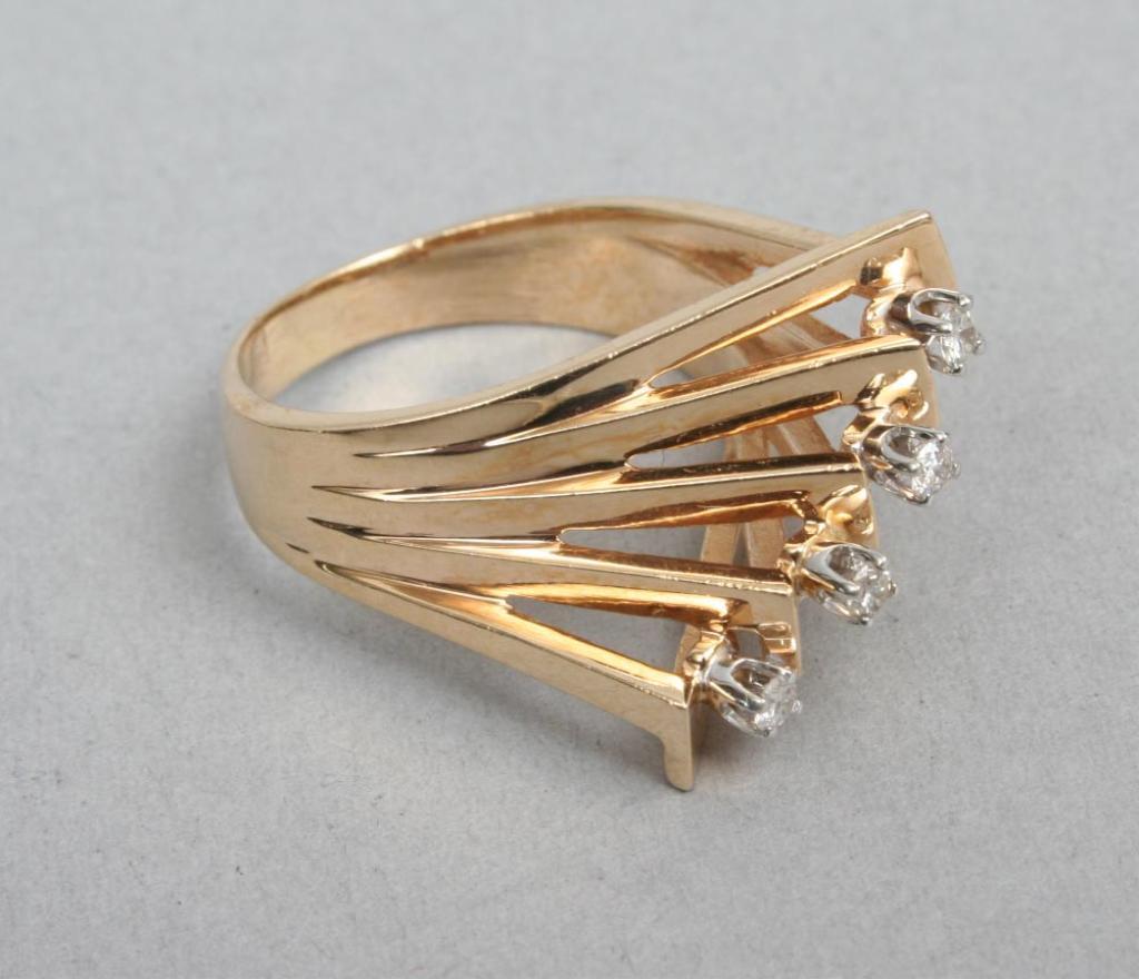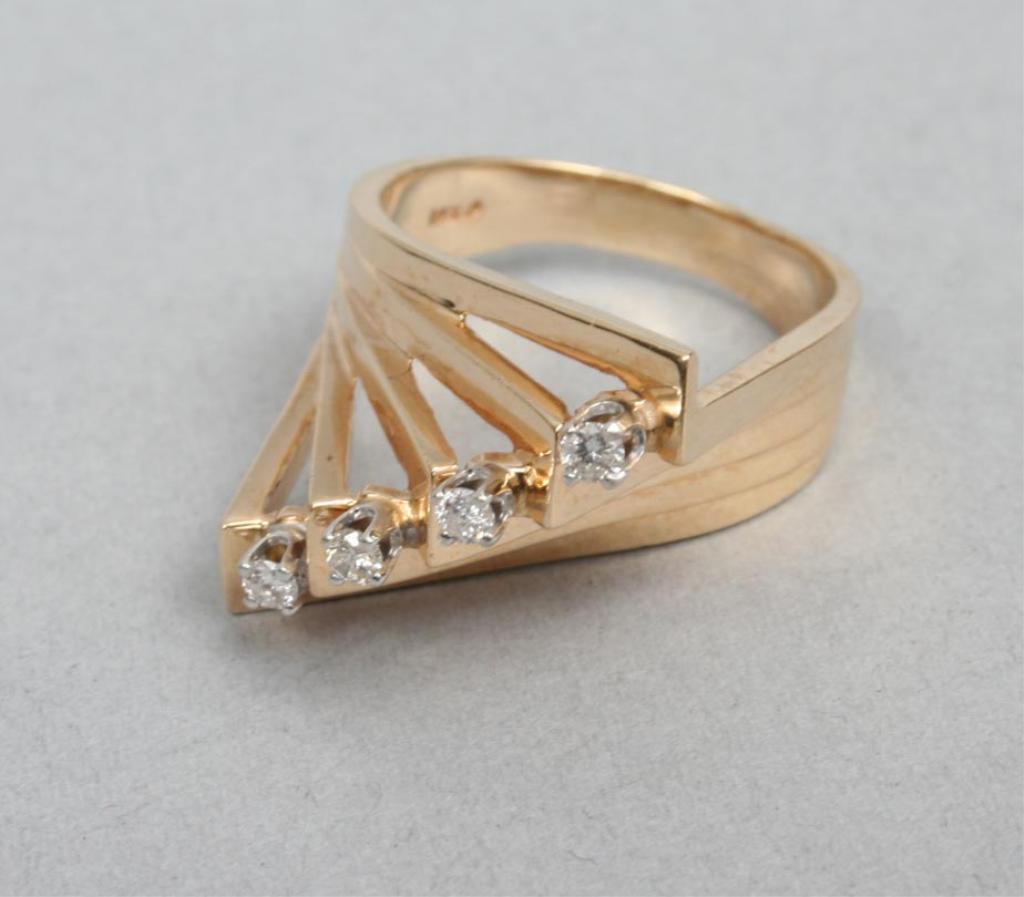 The domical yellow gold form set with small round brilliant cut diamonds. Condition: good.