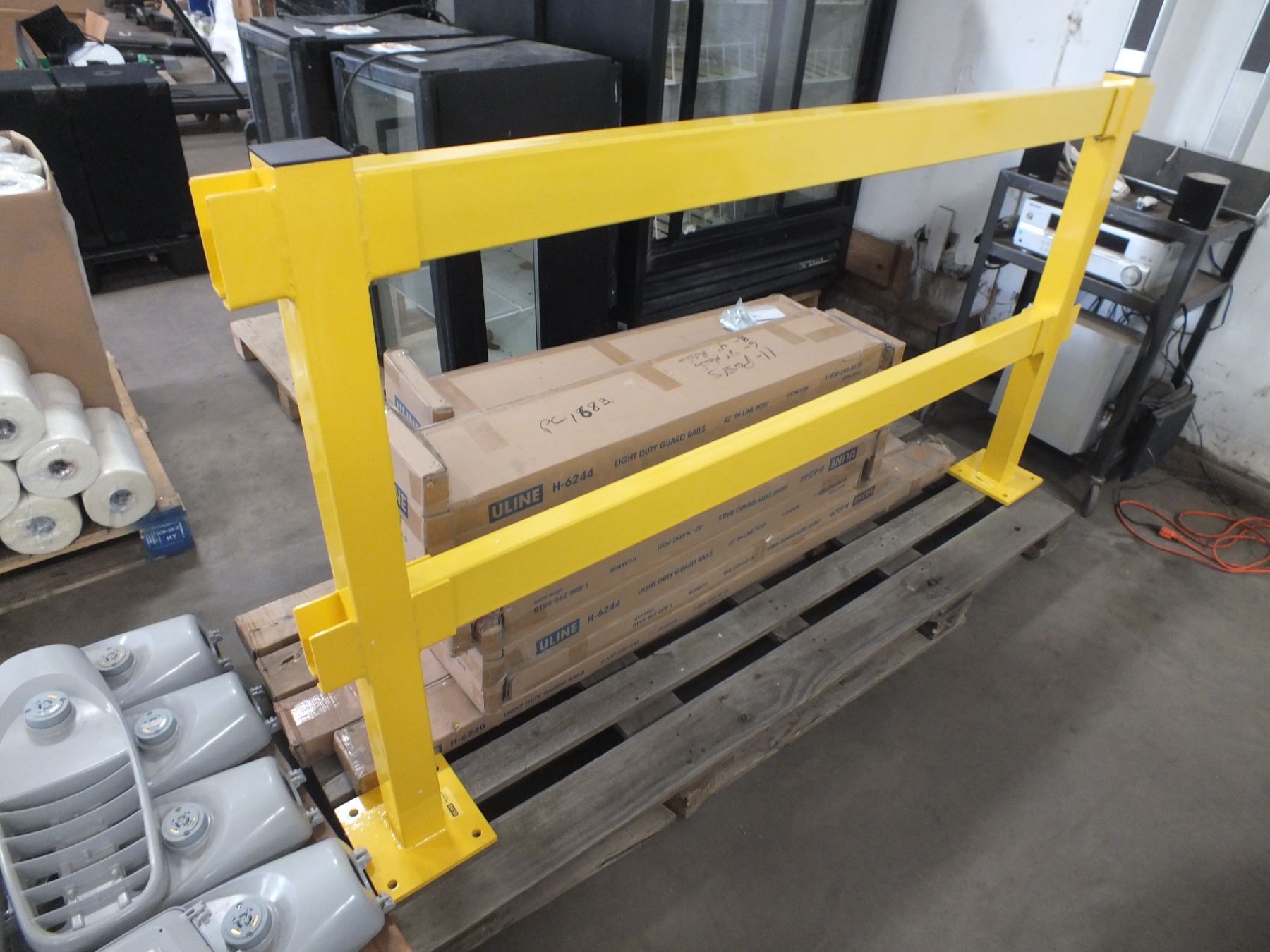 Yellow Guard Rails, you get it all for one money, 11 posts, 6 8ft rails and 4 4ft rails, freight claim...new