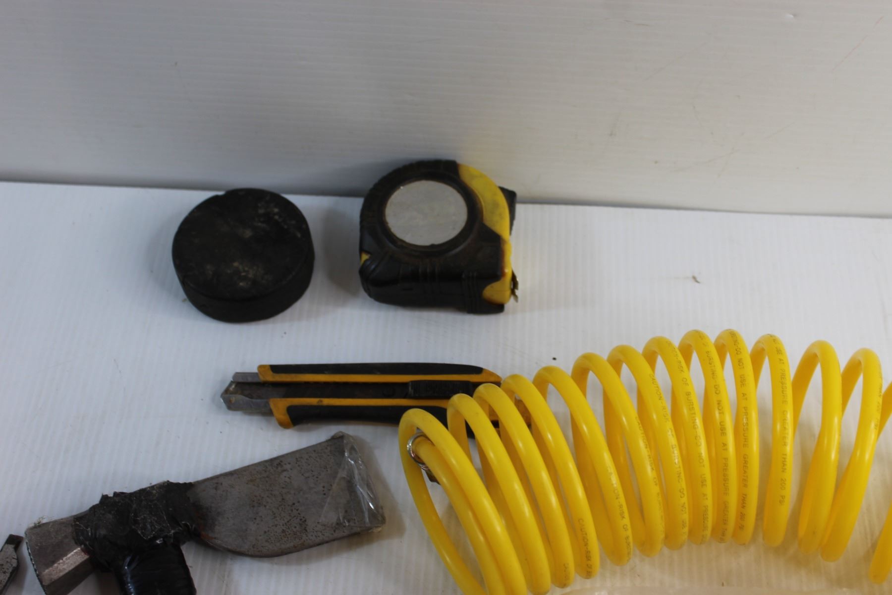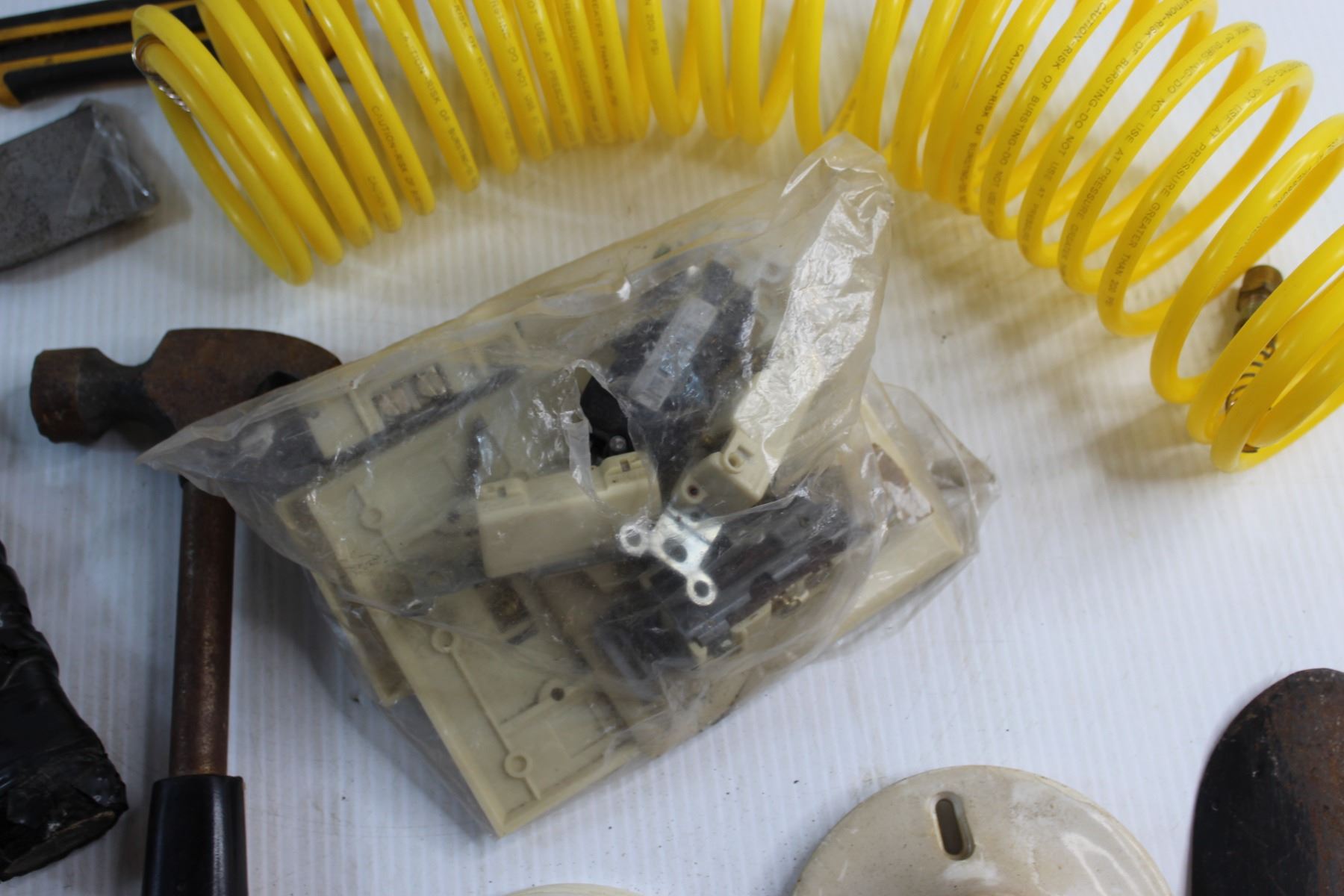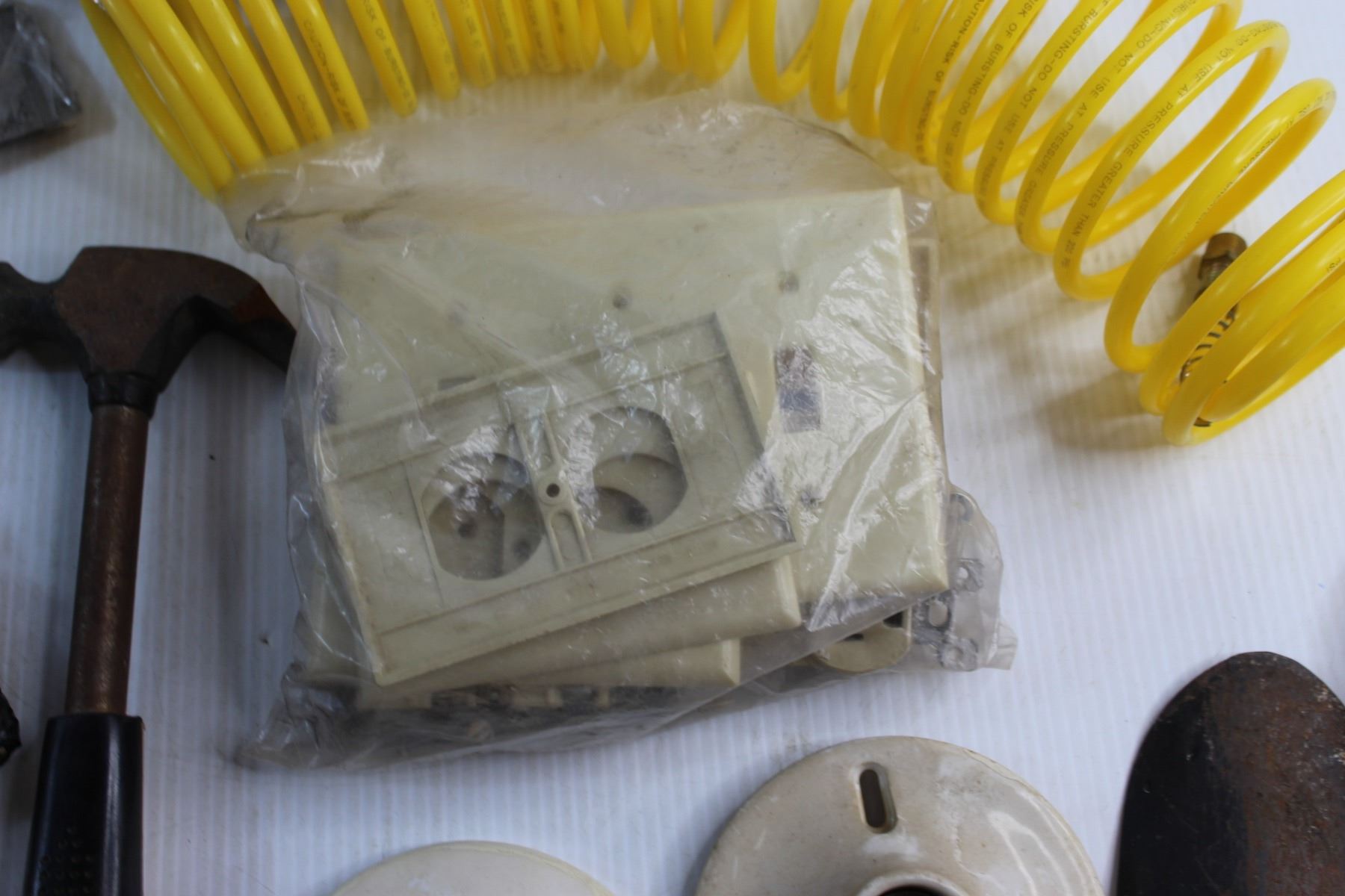 Yellow Hose, Assorted Hammers and Screwdrivers and Assorted Items