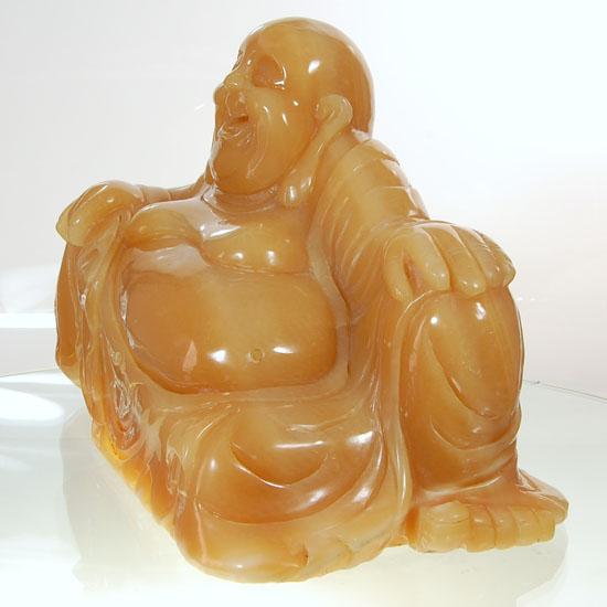 Excellent Chinese style Buddha of carmel colored yellow jade; nicely carved; 42 lbs; 16" wide