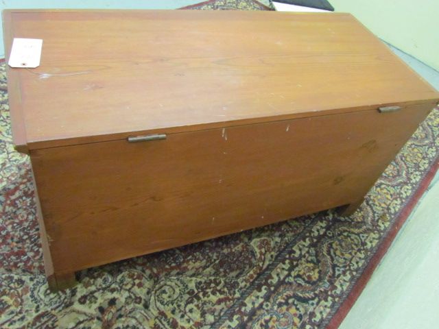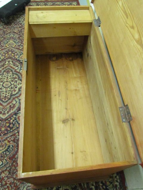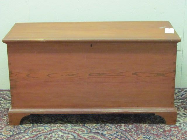 Early 1800's local yellow Pine Blanket Chest with dovetailed case and feet, inside till, original hardware and light red wash
