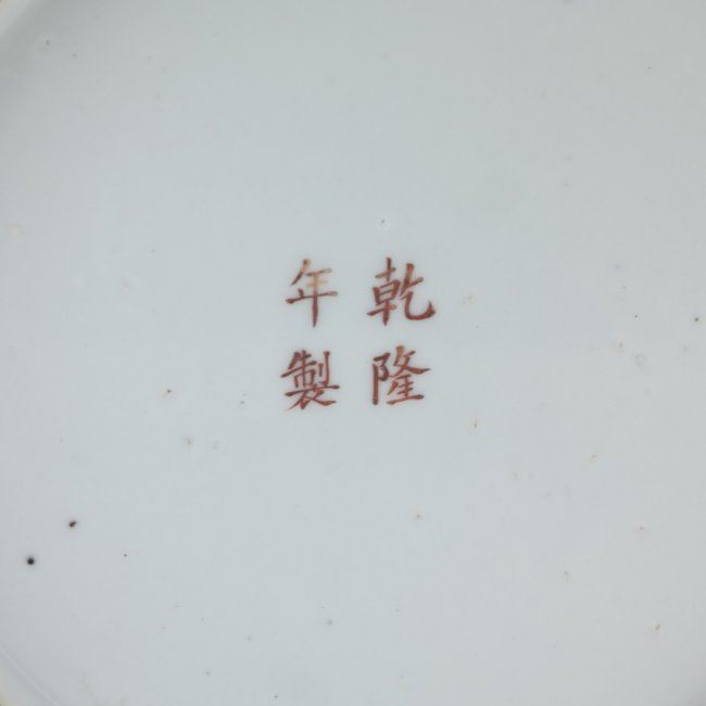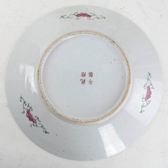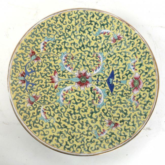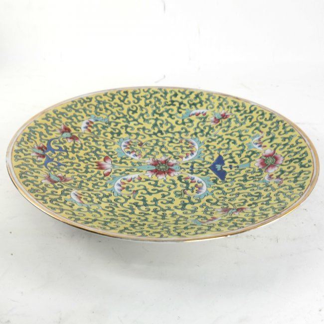 Floral and leaf decorated Chinese charger. [13 1/4" Dia x 2" H]. Imperfections, paint loss.