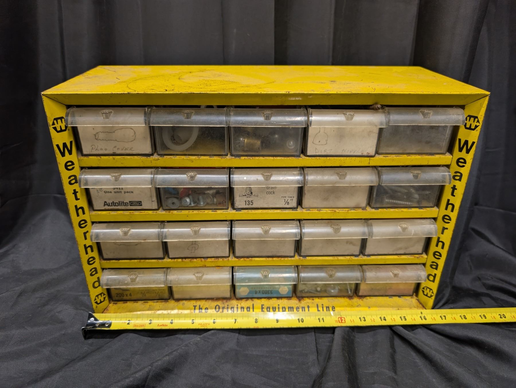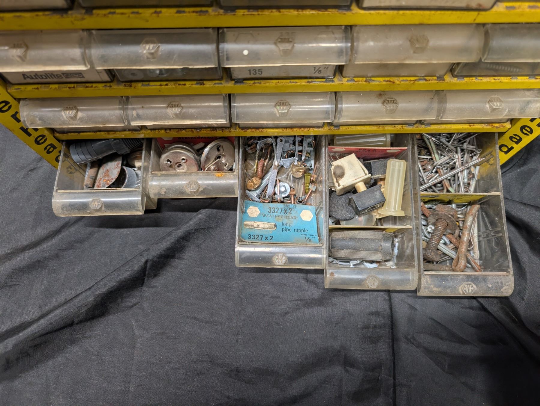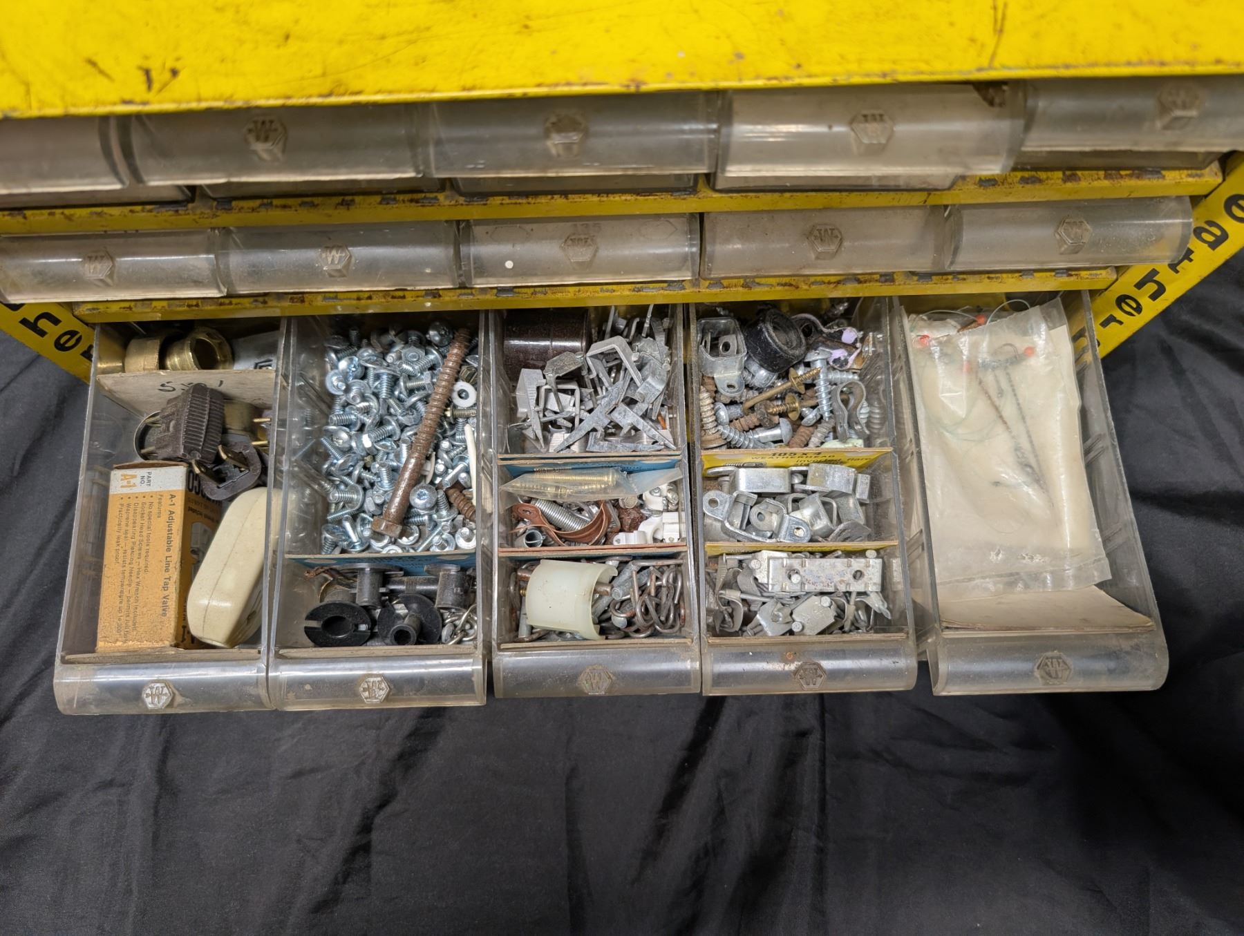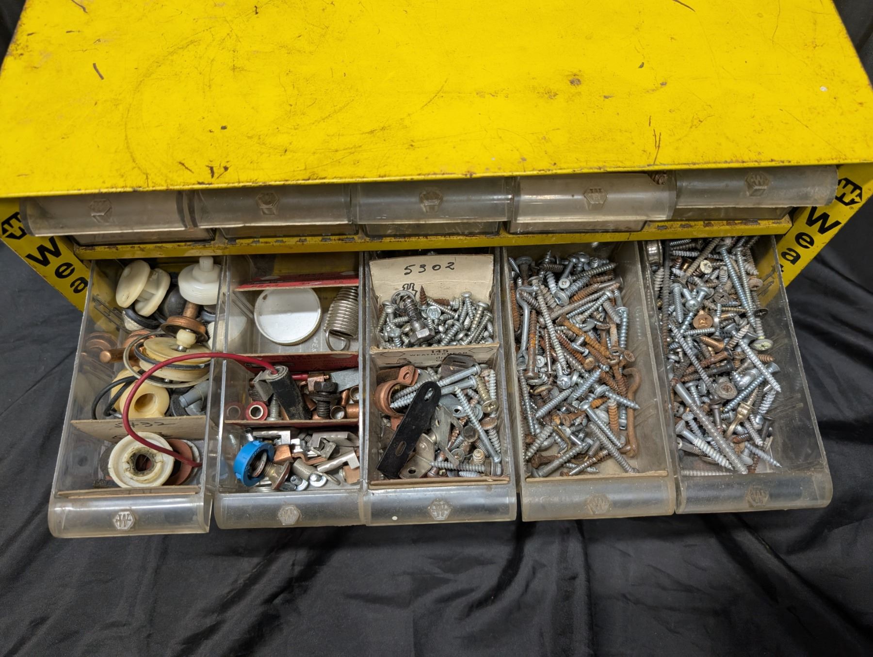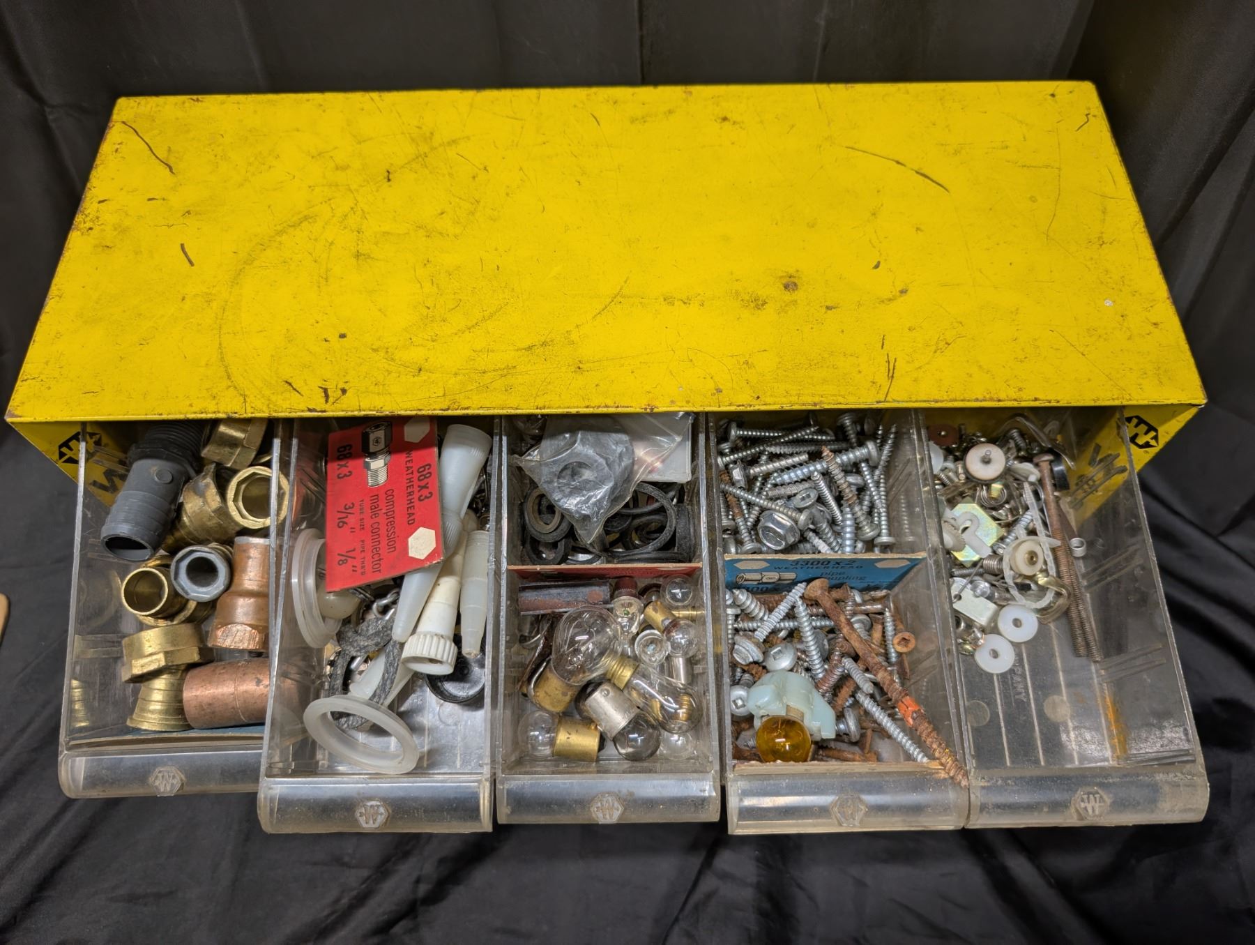 Yellow Storage Unit (tools Materials) 17"x11" w/ Misc. Tool Hardware