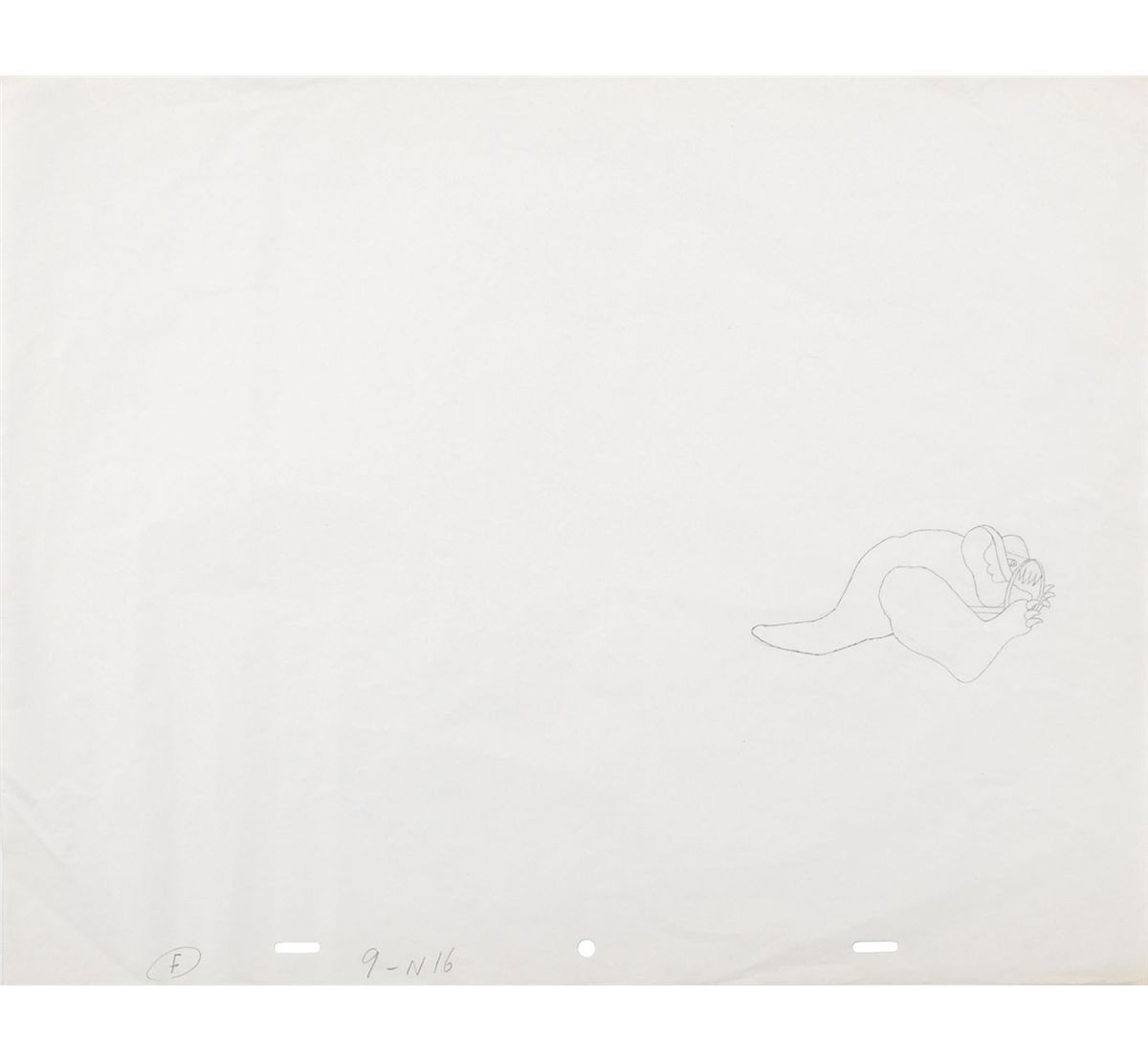 Original pencil sketch of a Pepperland creature on an off-white 16 x 12.5 sheet of animation paper, with notations and holes along bottom edge. In fine condition, with some scattered light creases.