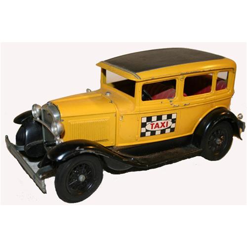 Hubley Yellow Buick Taxi Cab measures approximately 7 ½" L.  Light wear, minor scratches, in overall good condition with no dents.