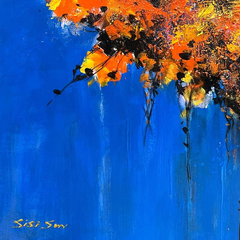 "Yellow Tree I" is an original acrylic painting on canvas by Sisi Sun, hand signed by the artist. This piece comes gallery wrapped. Includes Letter of Authenticity. Measures approx. 19.5" x 19.5" (image).