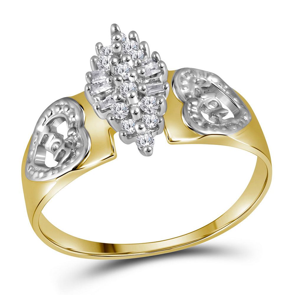 Yellow-tone Sterling Silver Womens Round Diamond Heart Mom Cluster Ring 1/8 Cttw