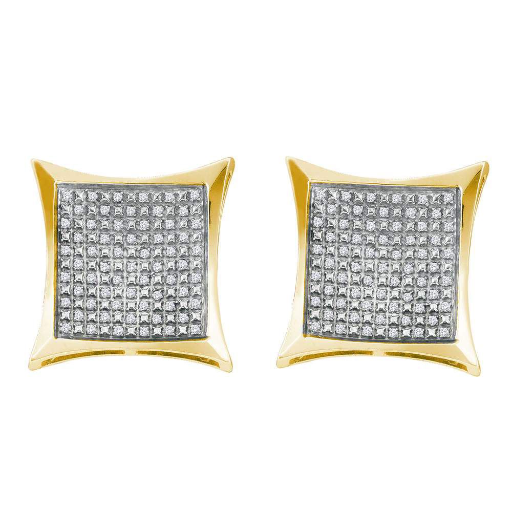 Yellow-tone Sterling Silver Round Diamond Square Kite Cluster Screwback Earrings 1/3 Cttw
