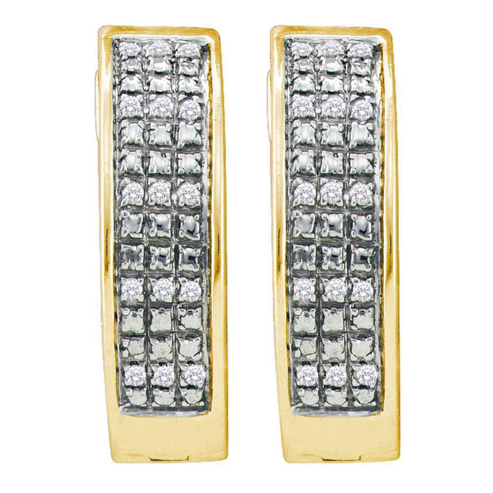 Yellow-tone Sterling Silver Round Pave-set Diamond Triple Row Hoop Earrings 1/10 Cttw