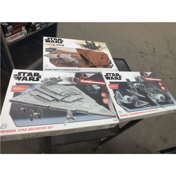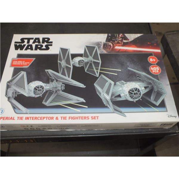 3 Star Wars Paper Model Kits, Imperial Star Destroyer set, The Mandalorian, Imperial Tie Interceptor & Tie Fighters set...1 is still sealed...used