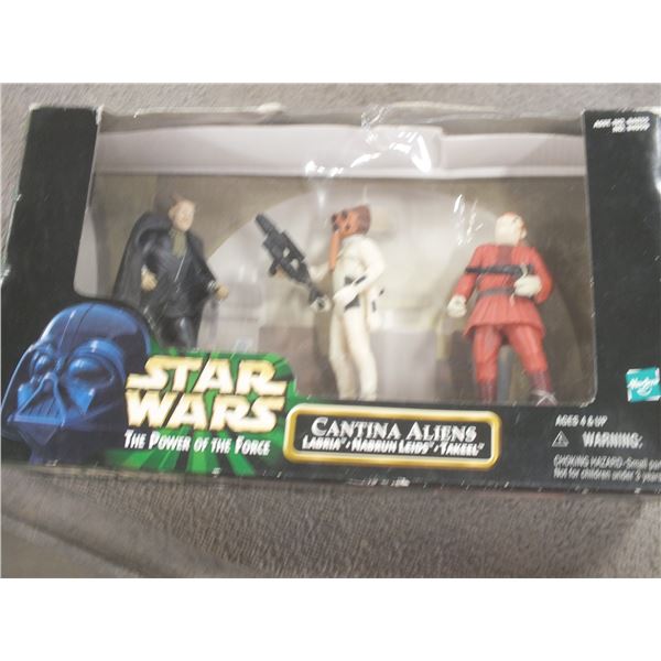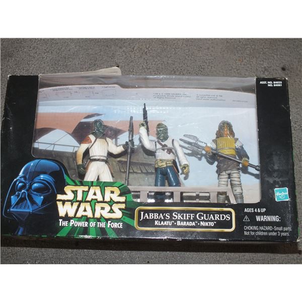 3 Star Wars Figurines, Greedo, Lando Calrissian as skiff guard, R5 D4, sealed In the box...new