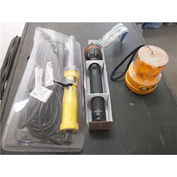 you get it all for one money, Battery powered magnetic orange beacon light, job light and a flashlight...New/used