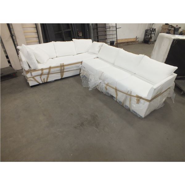 2pc White Sectional, needs some cleaning as seen in the photos, as it got dirt from the truck when shipped to us...show home...Like New