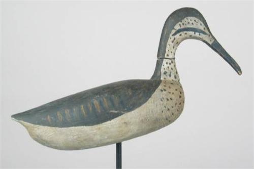 Yellowlegs decoy from LA in XOP with light wear and a neck check. Body is carved like a boat. Made without eyes. (decoy)