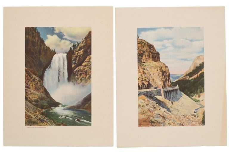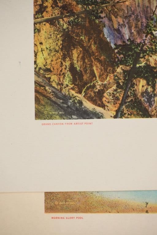 For your consideration are twelve F.J. Haynes checks and colored, chromolithographs from Yellowstone circa 1900-1930s. Frank Jay Haynes, known as F. Jay or the Professor to almost all who knew him, was a professional photographer, publisher, and entrepreneur from Minnesota who played a major role in documenting through photographs of the settlement and early history of the great Northwest. The seven, colored chromolithographs show various locations in Yellowstone National Park such as Lower Falls of the Yellowstone River, Golden Gate Canyon, Old Faithful Geyser, Morning Glory Pool and more. The twelve checks are all punch stamped reading, "Paid" and are paid out to various people for various amounts of money. They read, "Haynes Picture Shops, Inc. / The First National Bank of St. Paul (22-1) St. Paul, Minnesota / St. Paul, Minnesota or Yellowstone Park, Wyoming". Each check features F.J. Haynes signature in pen. The chromolithographs show good condition overall with slight wear present from their age and handling over the years. The checks show good condition as well with slight wear and tears present to the edges of the checks from their age and handling over the years. The chromolithographs measure 12 3/4" L x 10" W, while the checks measure 3 3/4" L x 8 1/2" W. They have a collective weight of 4 ounces.