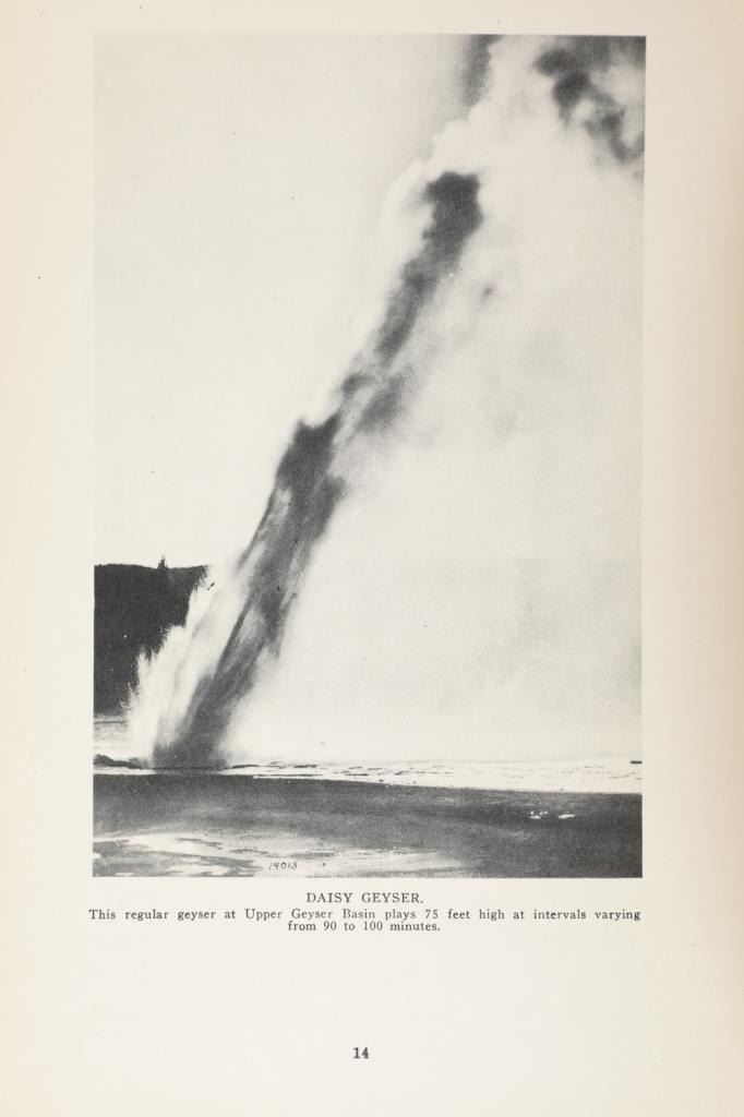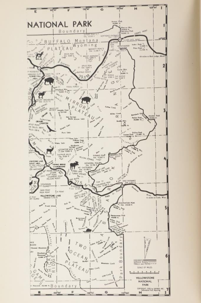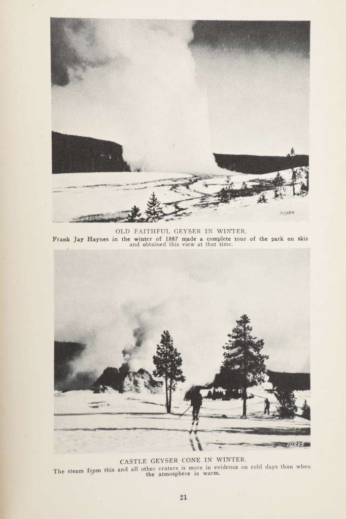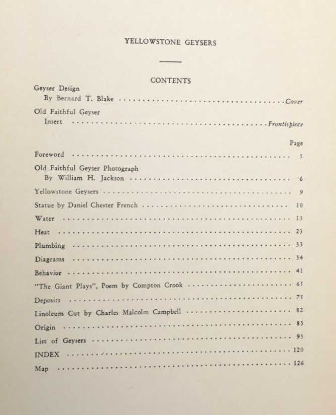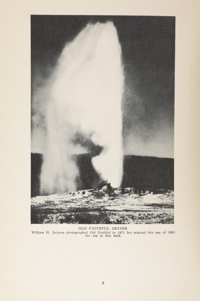Featured in this lot is this revised edition of "Yellowstone Geysers" by Clyde Max Bauer, Ph.D., and published by Haynes, Inc. in 1947. This book features an approval by the National Park Service. This edition was illustrated by Jack Ellis Haynes, the famous official photographer of Yellowstone and other National Parks. The many Haynes photographs are what make this edition special. The vintage black and white photography captures the beauty and power of the geysers. Geysers are a natural phenomenon found only in a few places in the world thus they fascinate us with their behaviour and striking beauty. An early scientific examination of the geysers at Yellowstone National Park. The author was the park naturalist and used his geologic experience and the extensive catalogue of official photographs from the Haynes photographers to bring a very instructive and attractive volume. At the end of the book is an alphabetical reference list of over one hundred geysers with facts about each. A map of Yellowstone locates the different geyser basins, mud volcanoes, hot springs, etc...The olive green cloth bound book has an illustrated image of Old Faithful geyser erupting on the front cover, is in good overall condition, slight scuffing noted to cover edges, foxing and age tanning noted. Measurements 6.25"W x 9.5"L x.5"D