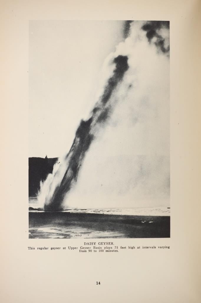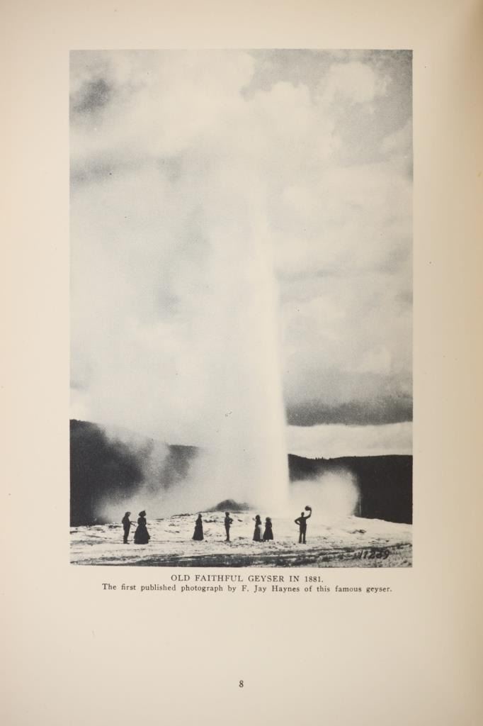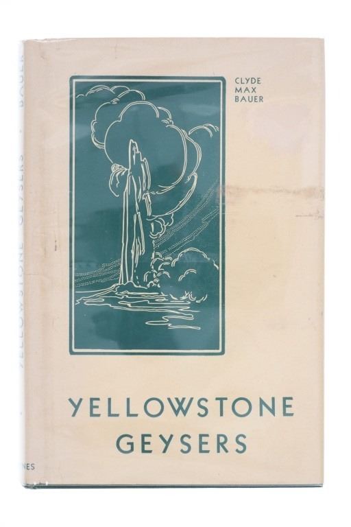 Featured in this lot is this revised edition of "Yellowstone Geysers" by Clyde Max Bauer, Ph.D., published by Haynes, Inc., Yellowstone Park, Wyoming, 1947. It is illustrated by Jack Ellis Haynes and was approved by the National Park Service. Clyde Max Bauer, Ph.D., was the Park Naturalist at the time of publication. This book has several photos and illustrations throughout, as well as details and stories of the Yellowstone National Park geysers. Jack Ellis Haynes, the famous photographer of Yellowstone and other National Parks. The many Haynes photographs are what make this edition special. This is one of the early works on Yellowstone geysers. Also includes a 1939 map of Yellowstone Park on pages 126-127. The book features a green coloured clothbound hardcover with gold gilt lettering and an illustration of an erupting geyser on the front cover. The condition of this book is good overall. Intact pages exhibit age tanning and very slight foxing consistent with the book’s age. It is in good condition and has a tight binding; there is little wear to the cover. Original paper dustjacket has some tearing, clear mylar covered. Measures 9.5" x 6.5"W x 9.5"L x 1"D, weight 1lb, 4oz