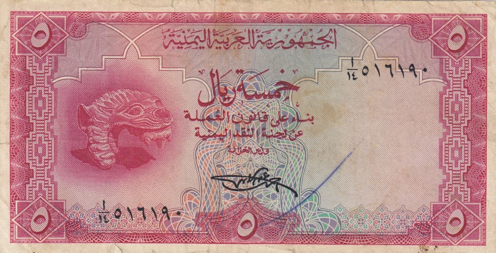 Yemen, 5 Rials, 1969, XF (-), p7br/