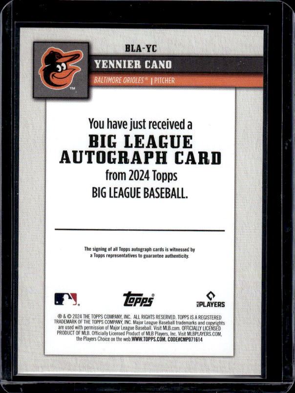 Yennier Cano Blue Auto 2024 Topps Big League #BLA-YC
