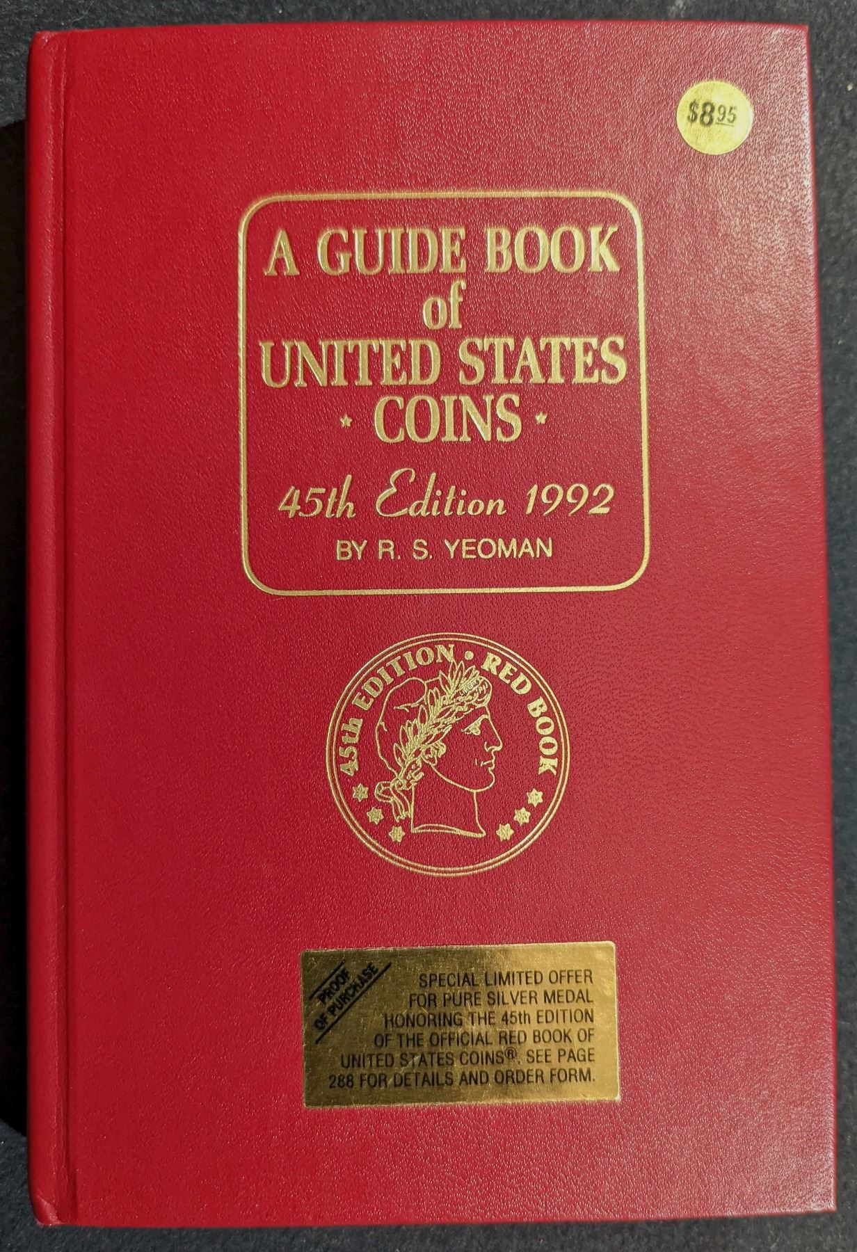 Yeoman, R.S. and Kenneth Bressett (Ed.). A GUIDE BOOK OF UNITED STATES COINS. 1992. SIGNED PRESENTATION COPY. Western Publishing Company, Inc. 1991. 12mo. 286 pages. 45th Edition. Original red leatherette, gilt. b&w illustrated throughout. Fine. Signed by Kenneth Bressett to contributor Holland Wallace on special presentation front flyleaf. This book is the standard identification and price guide to United States Coins. Lot weight: 0 lbs 14oz. Subject(s): United States Coinage.