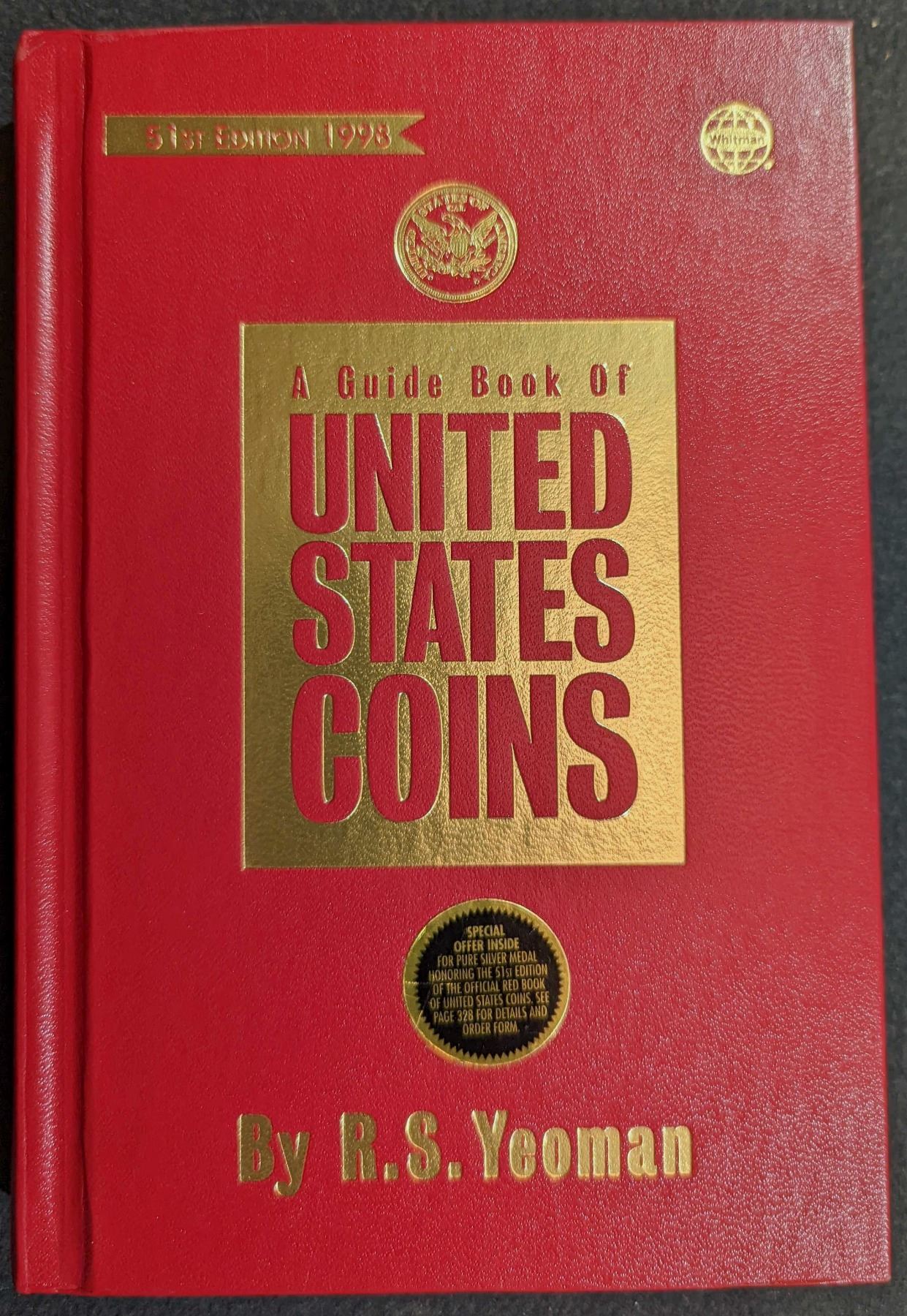 Yeoman, R.S. and Kenneth Bressett (Ed.). A GUIDE BOOK OF UNITED STATES COINS. 1998. SIGNED PRESENTATION COPY. Western Publishing Company, Inc. 1997. 12mo. 327 pages. 51st Edition. Original red leatherette, gilt. b&w illustrated throughout. Fine. Signed by Kenneth Bressett to contributor Holland Wallace on special presentation front flyleaf. This book is the standard identification and price guide to United States Coins. Lot weight: 1 lbs 0oz. Subject(s): United States Coinage.