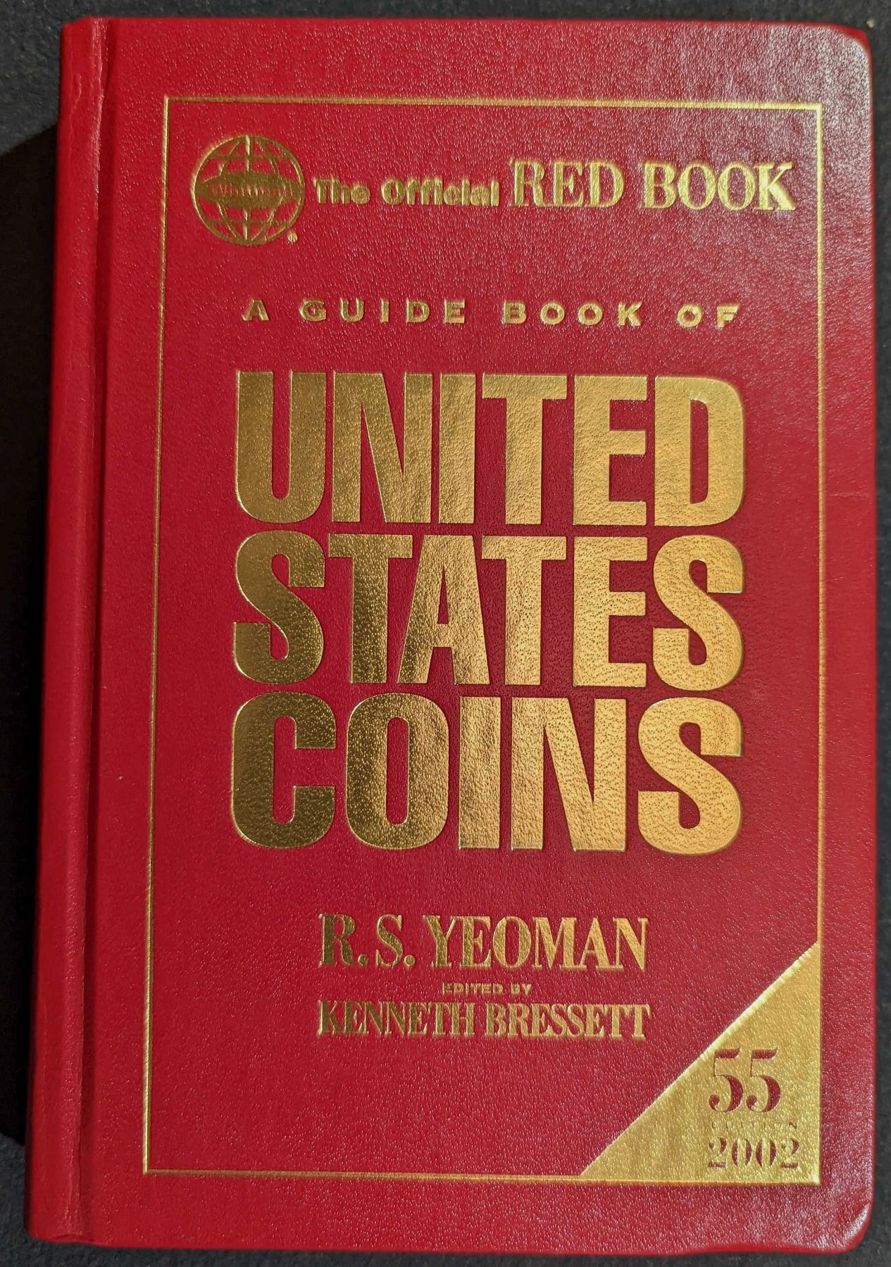 Yeoman, R.S. and Kenneth Bressett (Ed.). A GUIDE BOOK OF UNITED STATES COINS. 2002. SIGNED PRESENTATION COPY. Western Publishing Company, Inc. 2001. 12mo. 350 pages. 55th Edition. Original red leatherette, gilt. color and b&w illustrated throughout. Fine. Signed by Kenneth Bressett to contributor Holland Wallace on special presentation front flyleaf. This book is the standard identification and price guide to United States Coins. Lot weight: 1 lbs 1oz. Subject(s): United States Coinage.