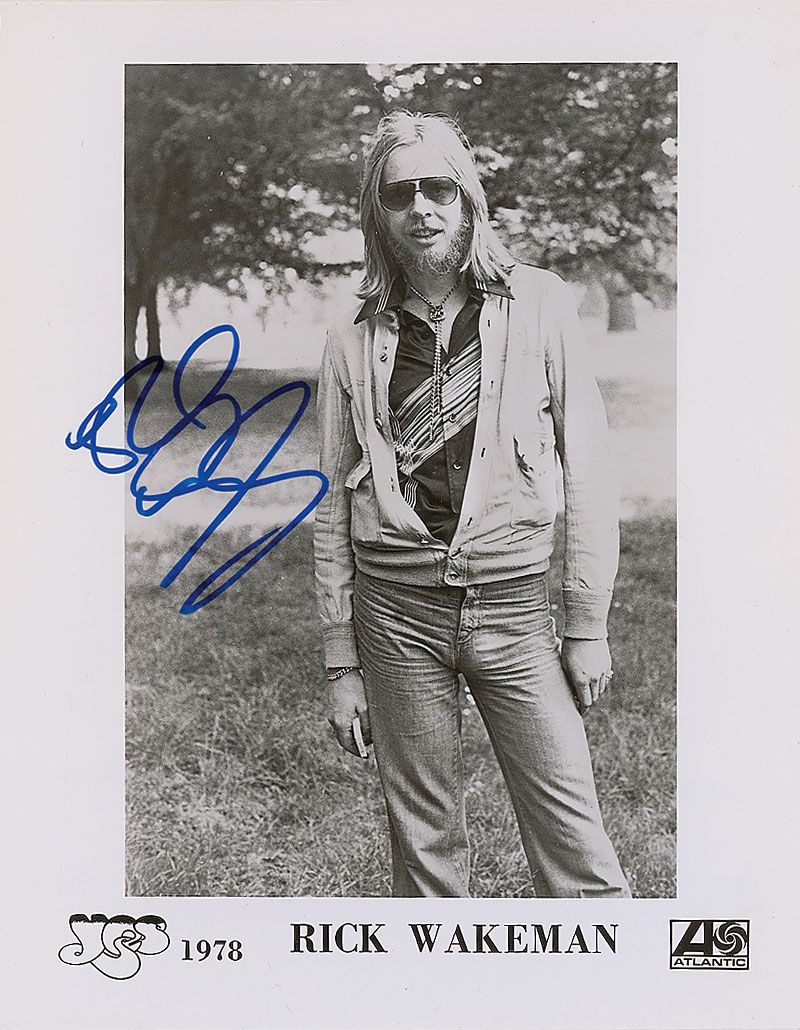 Glossy 8 x 10 Atlantic publicity photo as a member of Yes, signed in person in blue felt tip. In fine condition, with a few light bends and creases. Originally obtained by in-person specialist Mike Wehrmann.