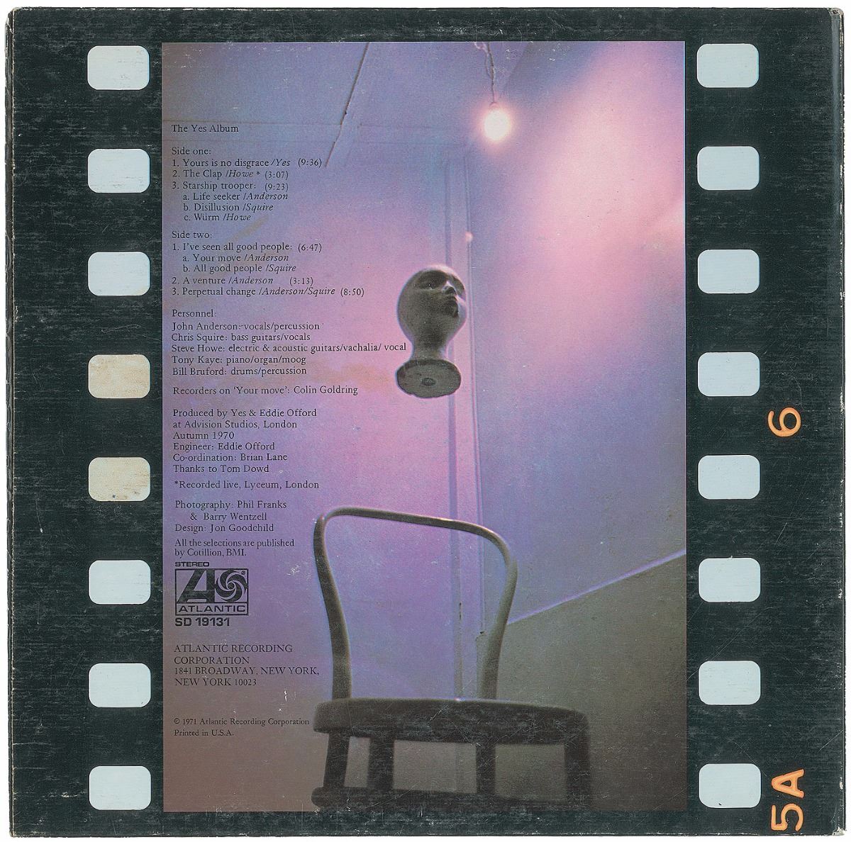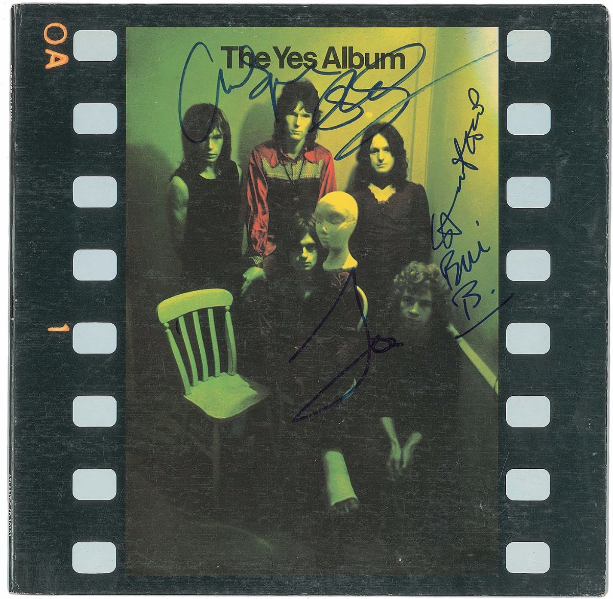 The Yes Album signed in person on the front cover in felt tip by Steve Howe, Bill Bruford, Rick Wakeman, Jon Anderson, and Chris Squire. In fine condition. The record is not included. Originally obtained by in-person specialist Mike Wehrmann.