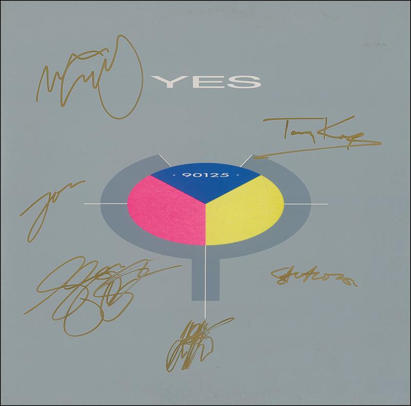 90125 album signed in gold ink by six members. In fine condition. The record is not included.