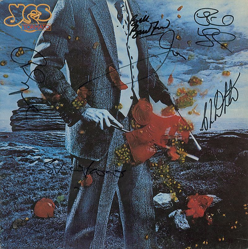 Tormato album signed on the front cover in black felt tip by Jon [Anderson], Steve Howe, Bill Bruford, Chris Squire, Alan White, and Rick Wakeman. Light contrast to a couple of the signatures, otherwise fine condition. The record is not included.