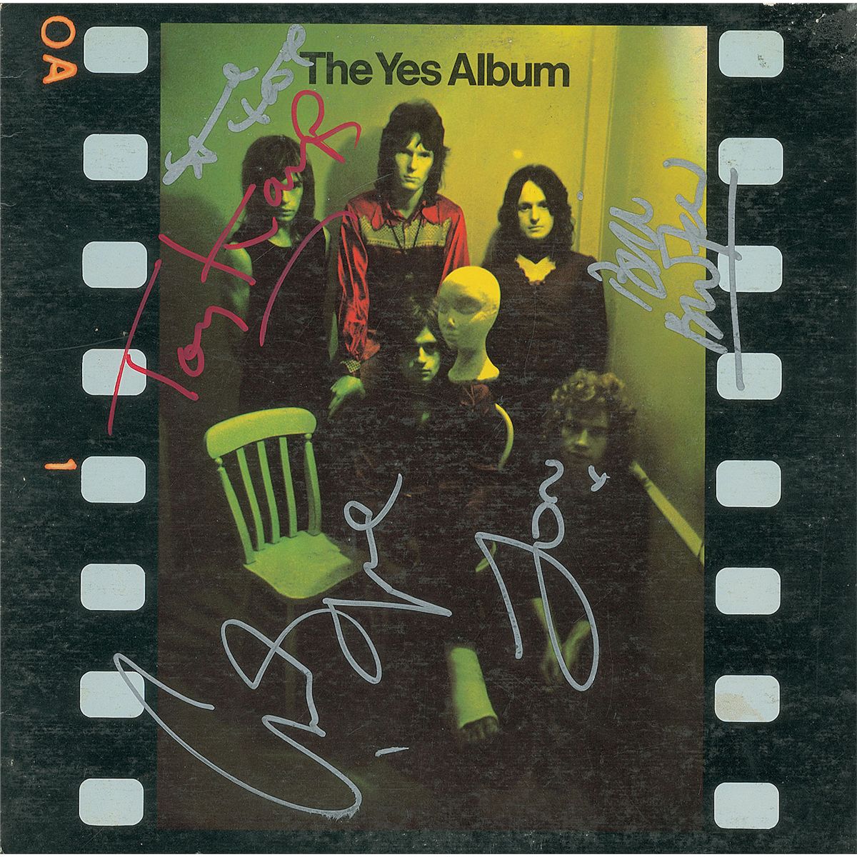 The Yes Album signed on the front cover in red and silver ink by Jon Anderson, Chris Squire, Steve Howe, Bill Bruford, and Tony Kay. In fine condition, with some scattered light wear to covers. The record is included.
