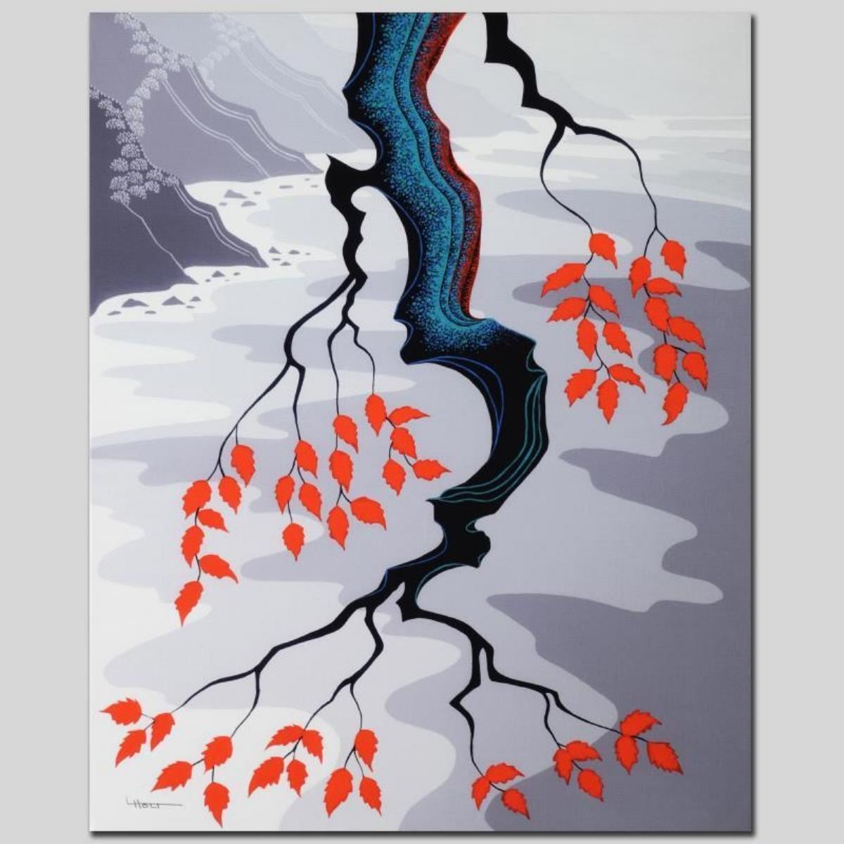 Larissa Holt, a student of distinguished artist Eyvind Earle(1916-2000), uses bold colors and breathtaking scenery to create images of Nature in her own unique style. "Yesterday" is a limited edition giclee on stretched canvas by Holt, numbered and bearing Holt's authorized signature. This piece comes gallery wrapped. Includes Letter of Authenticity. Measures approx. 21" x 26" x 1.5" (image). This item requires special handling and may have a longer than usual turnaround.