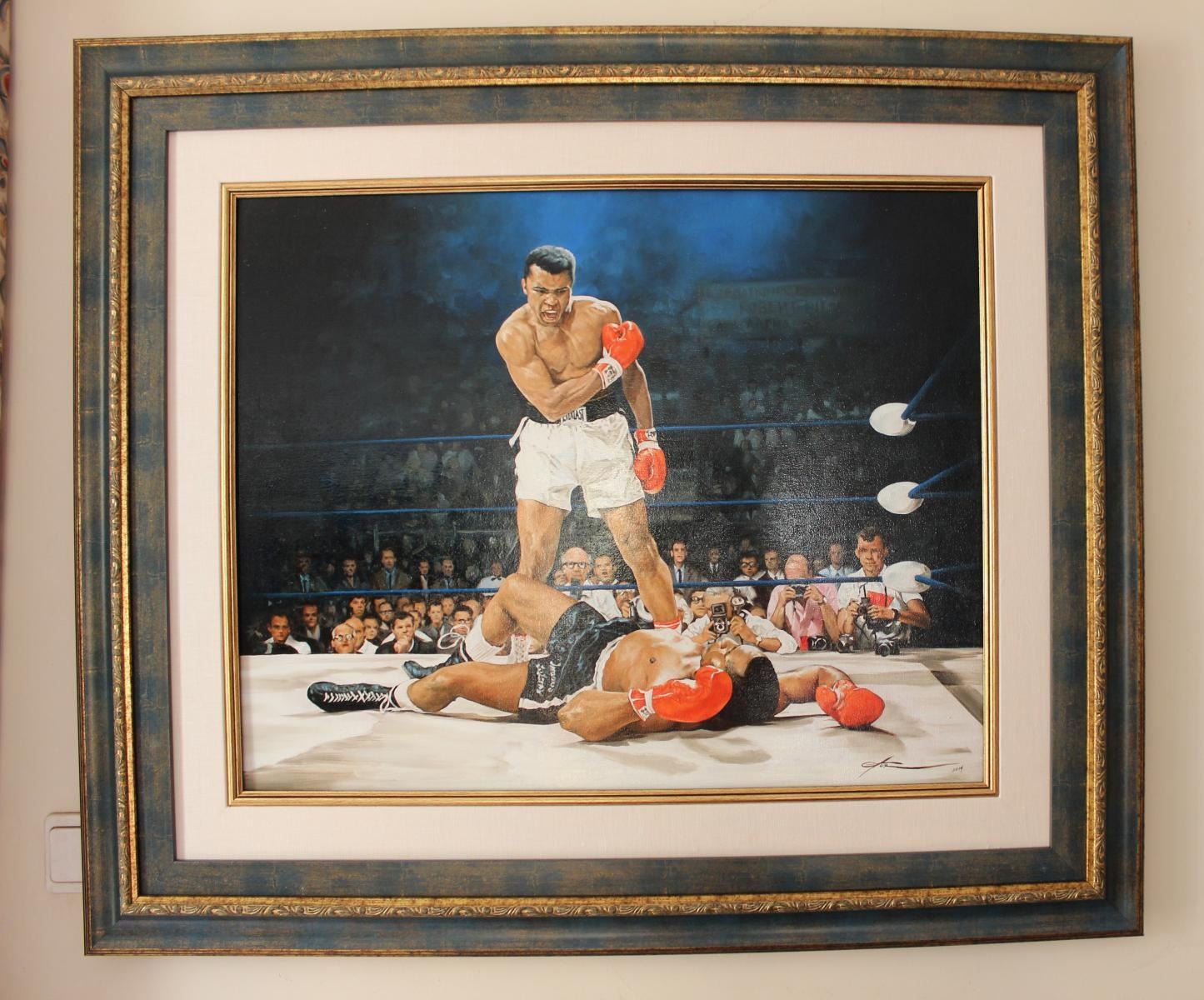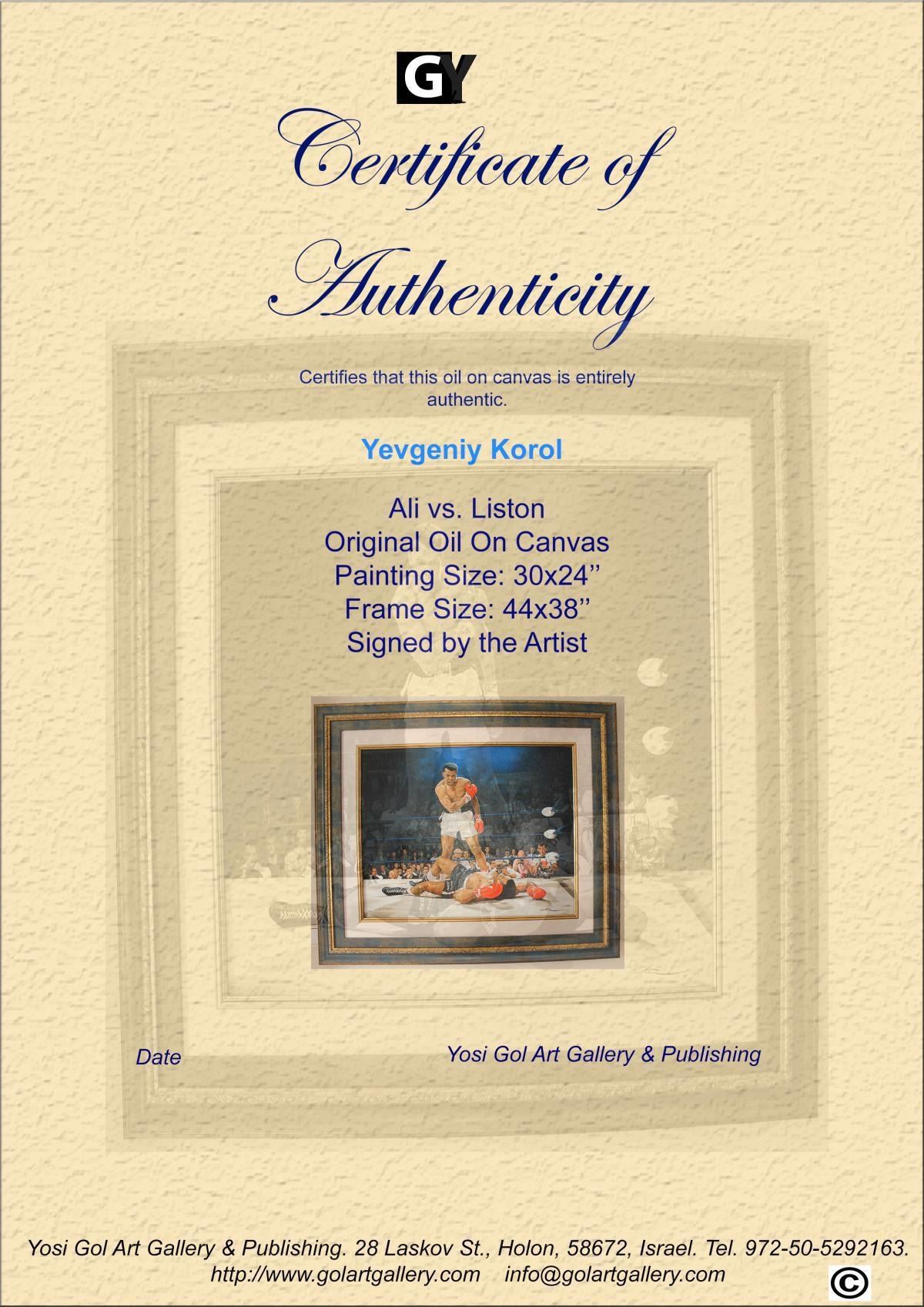 Artist: Yevgeniy Korol. Medium: Original Oil on Canvas. Title: Ali vs. Liston. Size (Unframed): 30" x 24". Size (Framed): 44" x 38". Certificate of Authenticity: From the publisher. Reference# 10364.