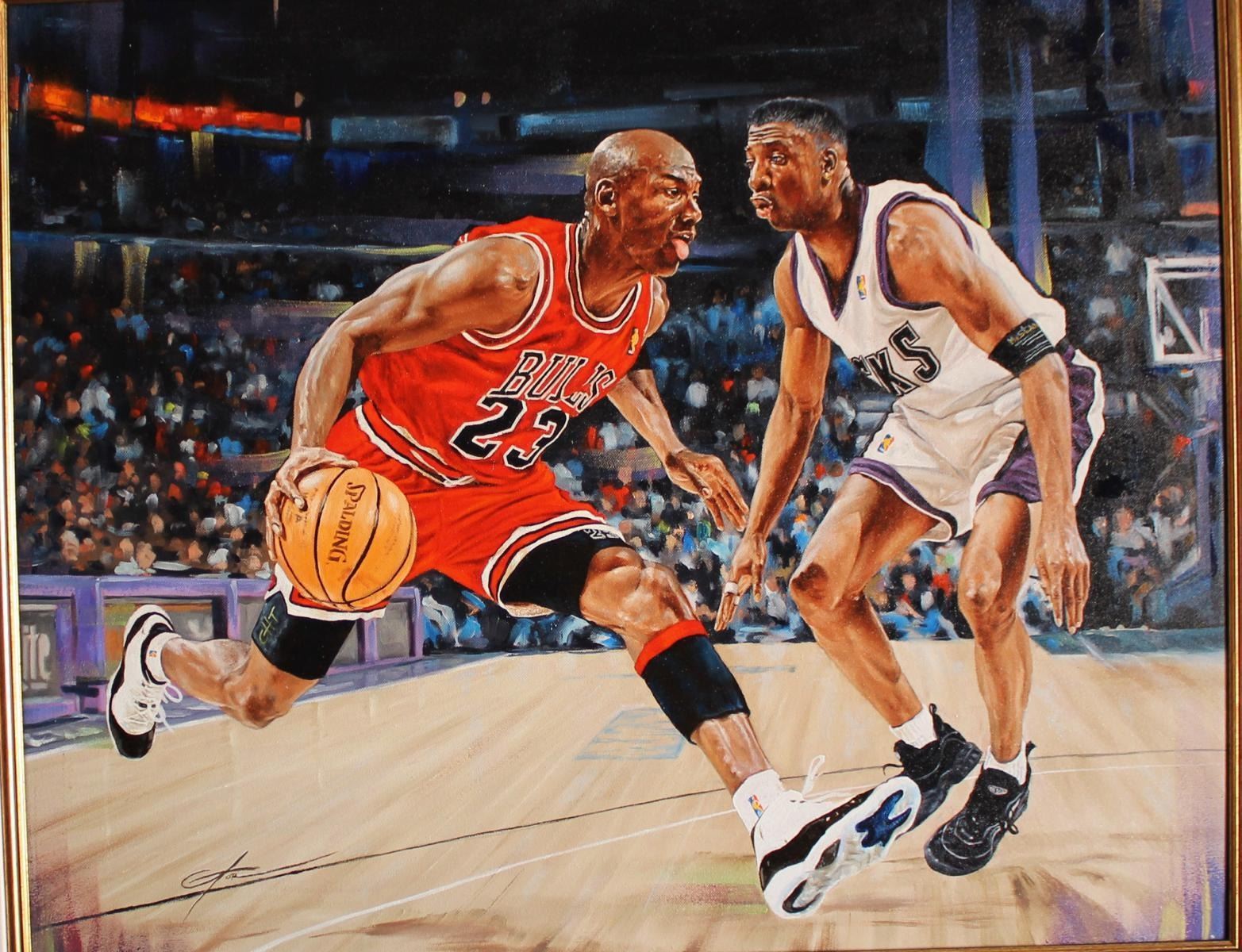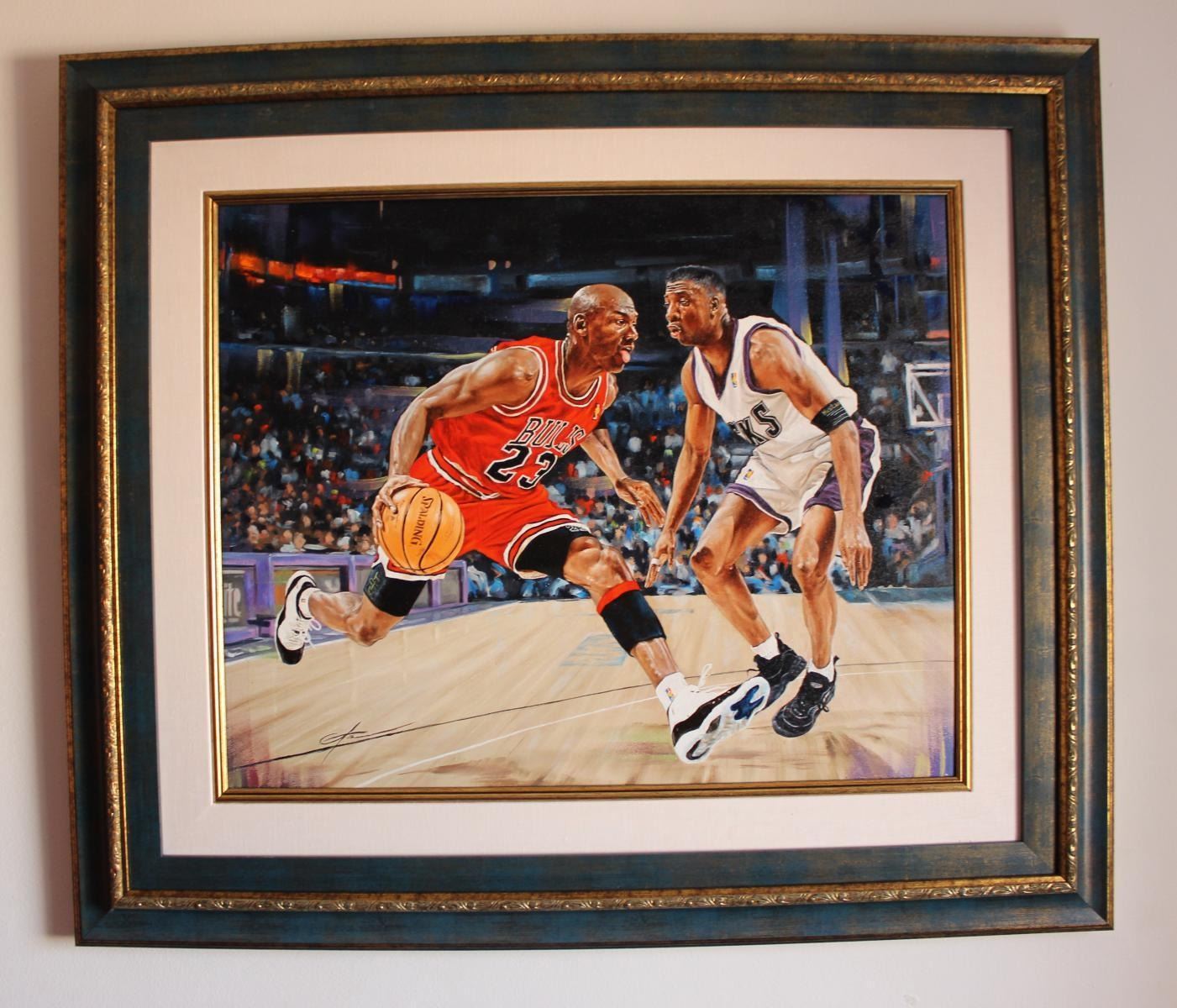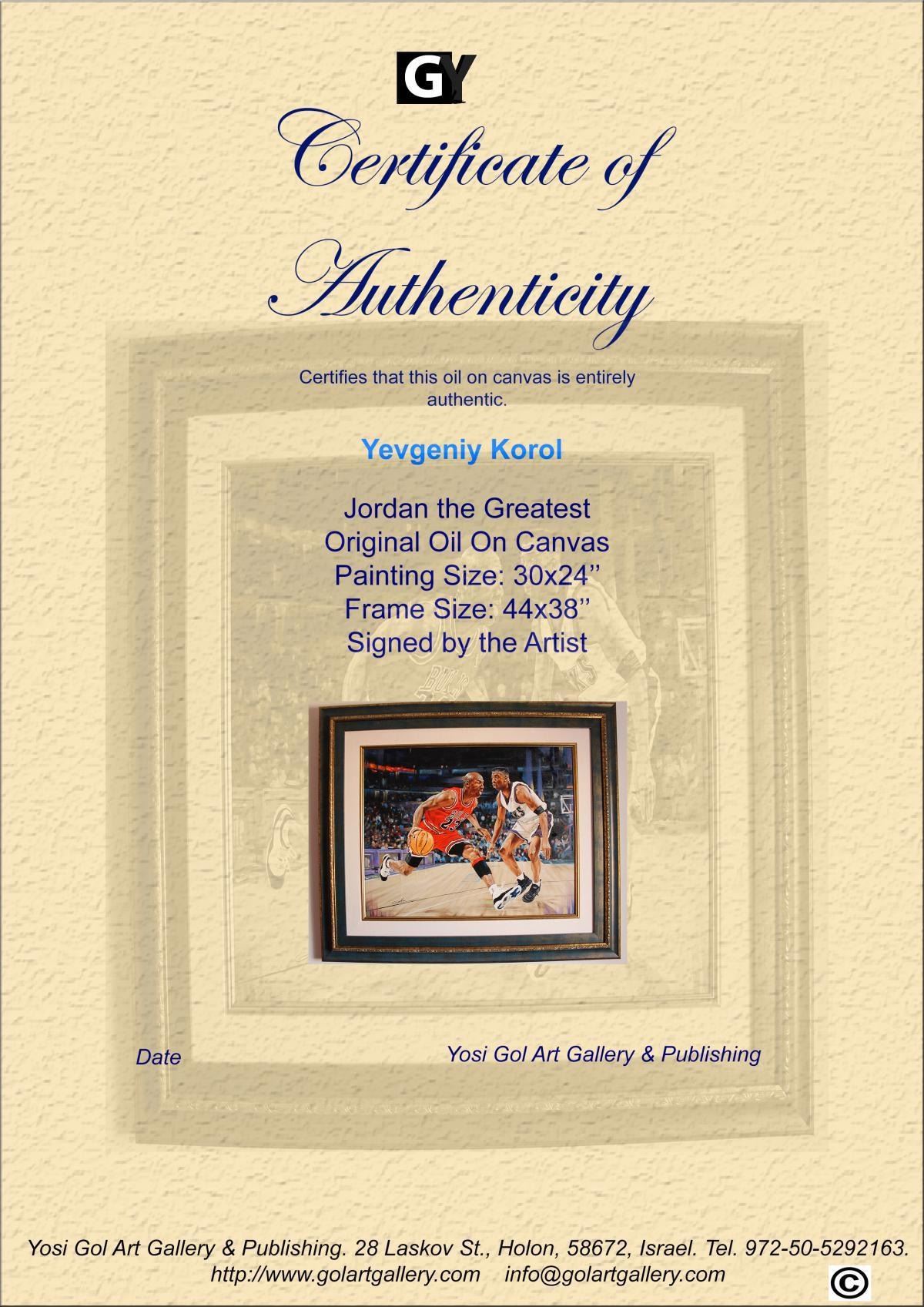 Artist: Yevgeniy Korol. Medium: Original Oil on Canvas. Title: Jordan the Greatest. Size (Unframed): 30" x 24". Size (Framed): 44" x 38". Certificate of Authenticity: From the publisher. Reference# 10366.