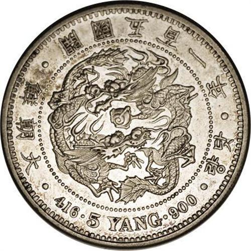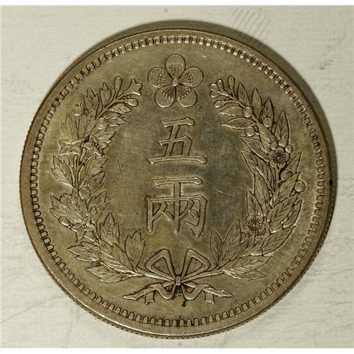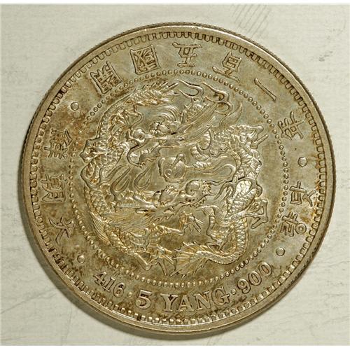 <B>Yi Hyong 5 Yang Year 501 (1892), </B></I>KM1114, choice AU, lightly toned with prooflike surfaces, rare and desirable grade for this crown-sized issue.<BR><I>From the Monedas Oro Collection</B></I><BR><BR><b>Shipping:</b> Coin/Currency (<a target="_blank" href="http://www.heritageauctions.com/common/shipping.php">view shipping information</a>)