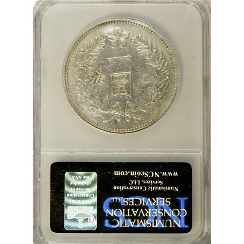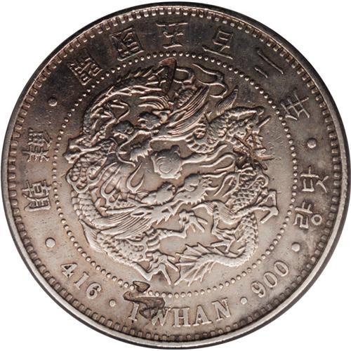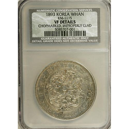<B>Yi Hyong Whan Year 502 (1893), </B></I>KM1115, VF Details (chopmarked & improperly cleaned) NCS. Perhaps a bit nicer than VF for wear, the obverse has three chopmarks and the reverse has one. Two of the obverse chops were applied within the dragon design, partially hiding them from view. This coin provides an opportunity to acquire a decent example of this very rare type at a reasonable price.<BR><BR><b>Shipping:</b> Coin/Currency (<a target="_blank" href="http://www.heritageauctions.com/common/shipping.php">view shipping information</a>)