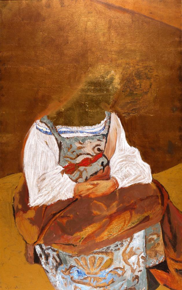 Yigal Ozeri, Israeli Art, B. 1958, Untitled, Oil and gold leaf on canvas, 165x105cm, Signed., , , , ,