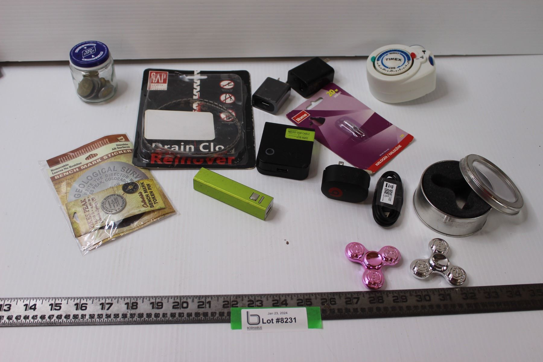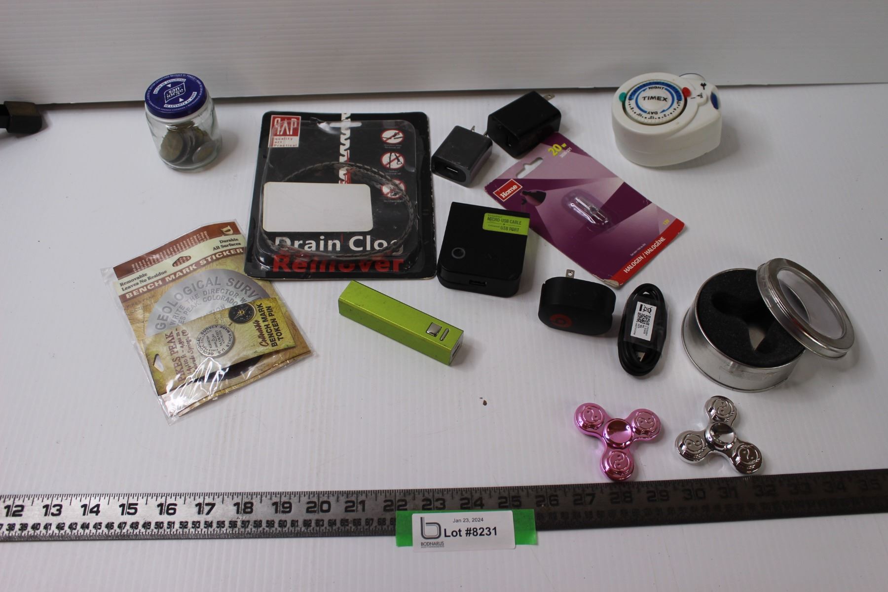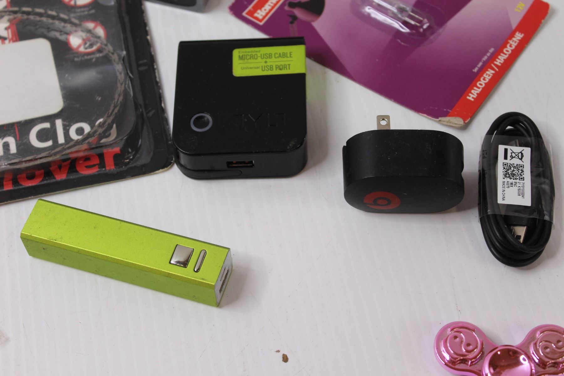 Ying Yang Fidget Spinners, Drain Clog Remover, Various Chargers, Misc.