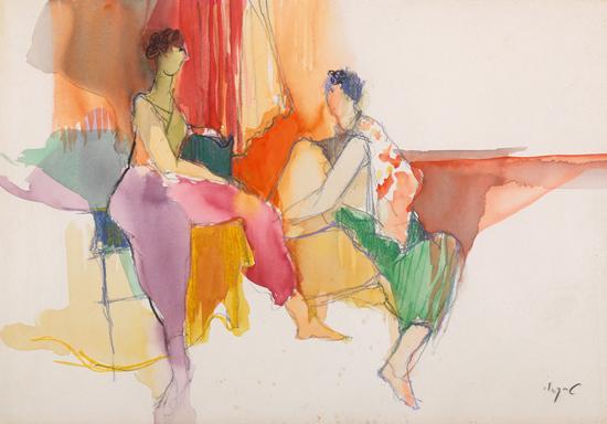 Yitzchak Tarkay, Israeli Art, B. 1935, Women, Pencil and watercolor, 38x54cm, Signed., , , , ,