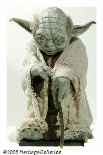 <B>Yoda Limited Edition Figure.</B></I> Featured is a reproduction of Jedi master Yoda, hand-painted and rendered in latex from a sculpting by Mario Chiodo, artist and president of Illusive Concepts Originals. Includes a certificate that lists it as #144 of 9500 made.