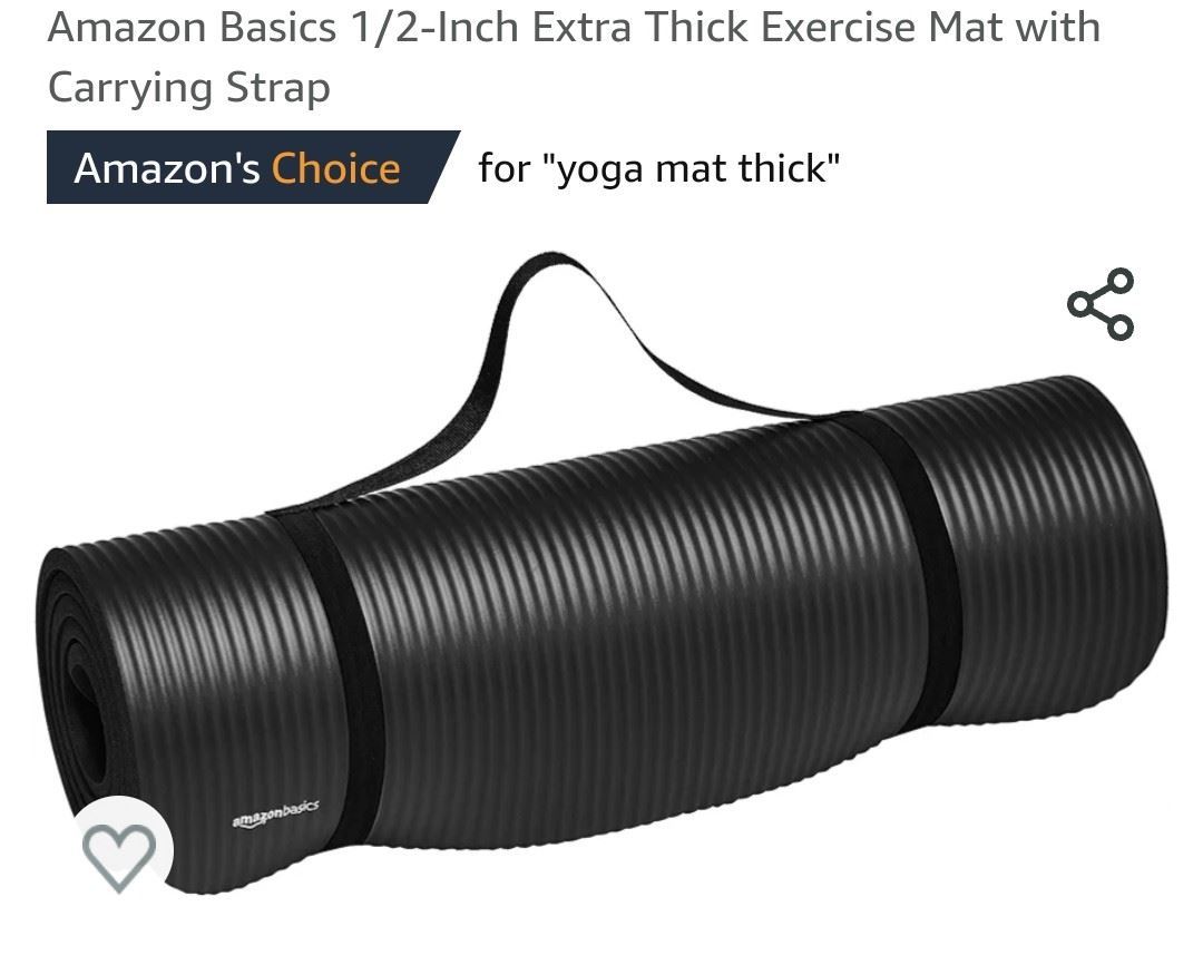 1/2-Inch cushioned workout mat for yoga and fitness, includes convenient strap, black, new.