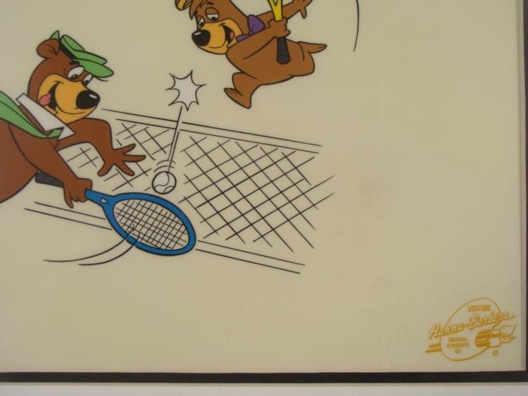 Tennis anyone? Yogi Bear and Boo Boo are certainly up for it in this limited edition animation cel. * Medium: Serigraph celImage size: 13 x 9 inchesDetails: Hanna-Barbera printed gold seal, lower rightPresentation: Double matted in blue and whiteMatte size: 18 x 14 inchesCondition: Excellent; sealed in cellophaneCertification: Included