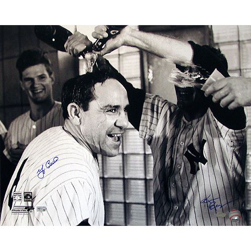 Yogi Berra Champagne Celebration B&W Horizontal 16x20 Photo (Signed by Regan) (MLB Auth)