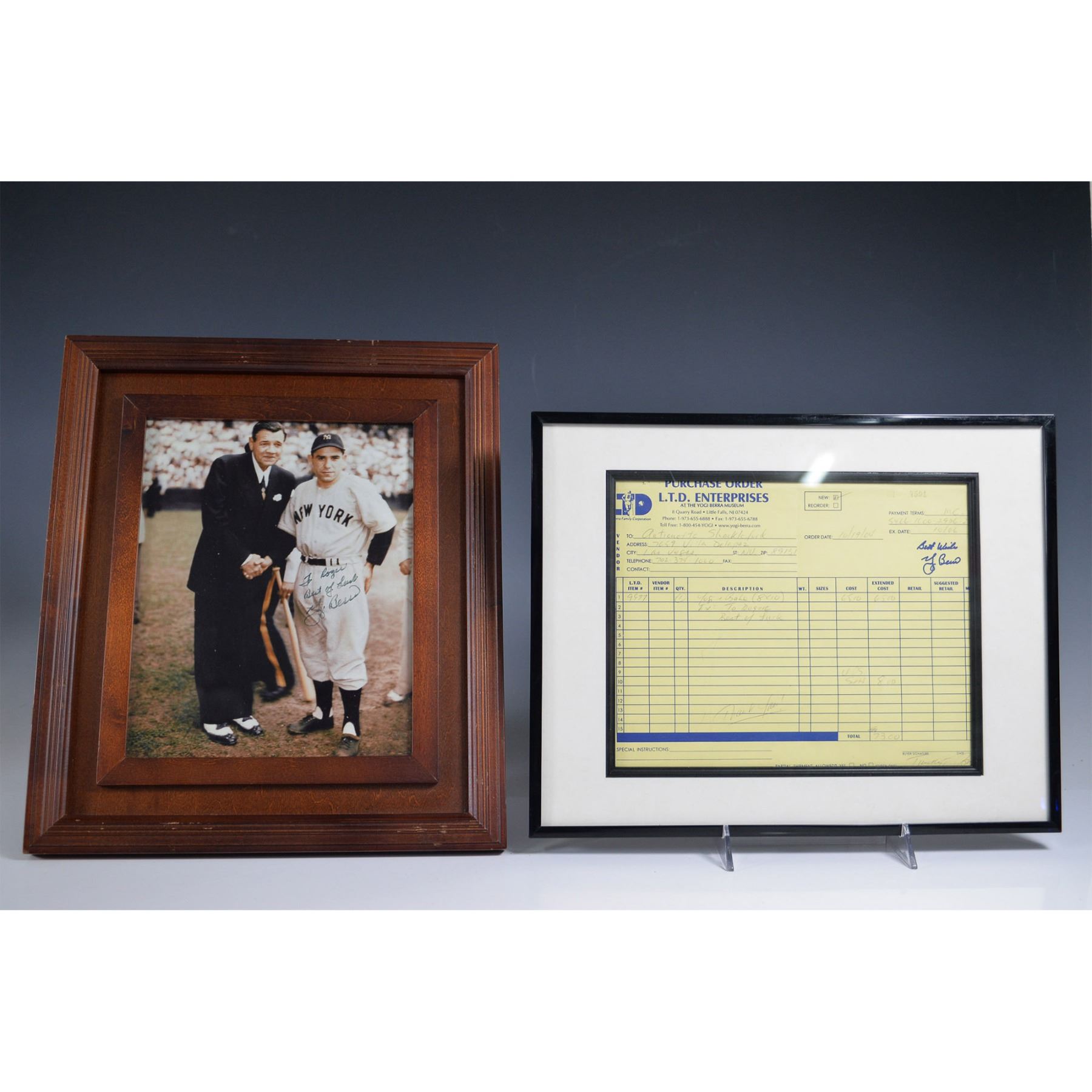 Yogi Berra Memorabilia, Signed Photo with Babe Ruth & Receipt